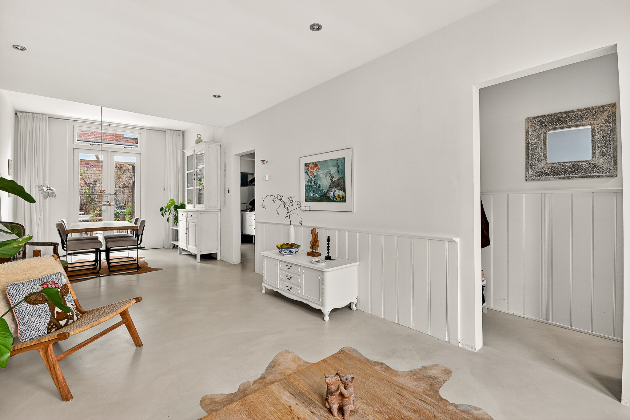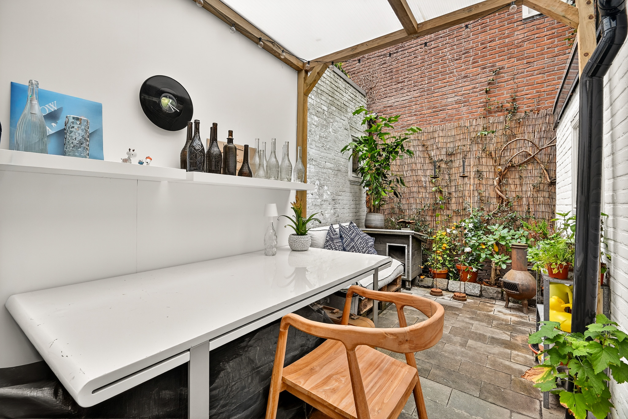 Deze sfeervolle benedenwoning is met liefde onderhouden en voelt direct warm en ruim aan. De woonkamer is maar liefst 9,5 meter diep en dankzij de grote ramen heerlijk licht. Via openslaande deuren loop je zo de zonnige patio op het zuiden in, perfect voor een kop koffie in de ochtend of een borrel in de namiddagzon. Het is zelfs zo een fijne plek dat de huidige eigenaar er deels een overkapping heeft laten plaatsen en daar een werkplek heeft gecreëerd.