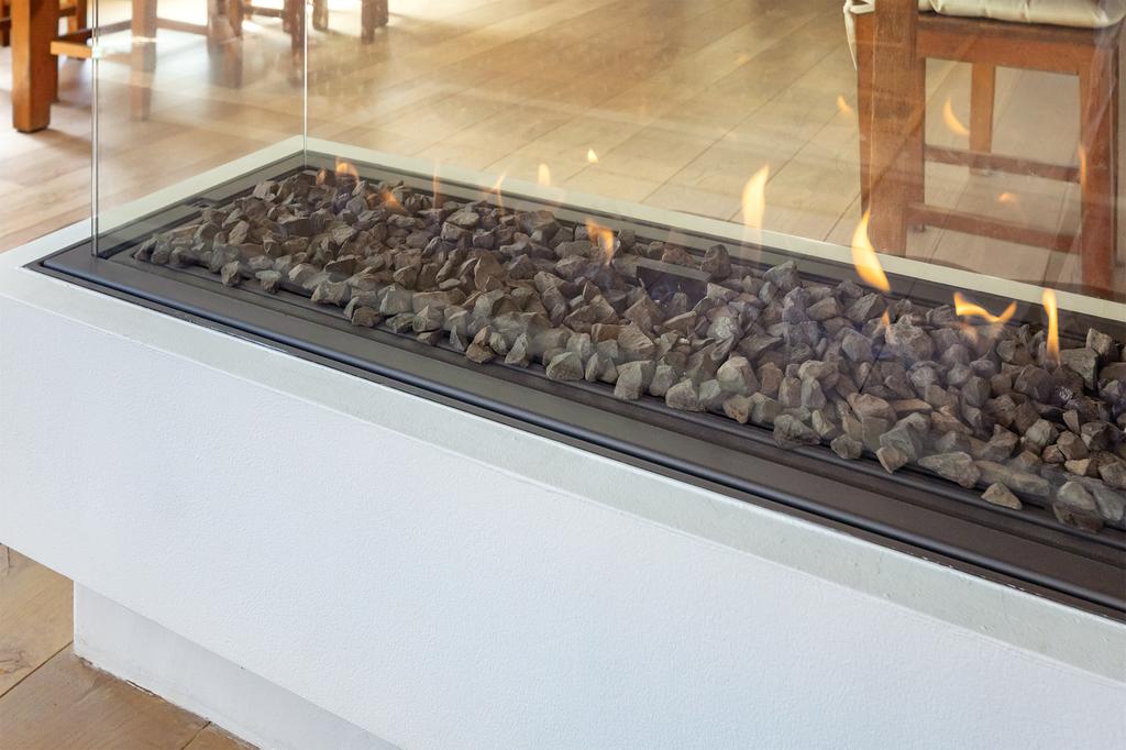 “Wat ik zo waardeer aan dit huis is het licht. De hele dag door stroomt er zonlicht binnen in de woonkamer en keuken – het geeft me energie, elke dag opnieuw. Mijn werktafel staat daarom ook precies daar. De woonkamer voelt groot en comfortabel, met genoeg ruimte voor een relaxhoek én een gezellige tv-hoek. En ’s winters steek ik graag de open haard aan, dat maakt het helemaal af. Wat ik nooit had verwacht, maar nu niet meer zonder wil: slapen op de benedenverdieping. Het is er heerlijk stil en de temperatuur is altijd perfect. Je slaapt hier écht goed. Als ik opnieuw zou kiezen, zou ik het zo weer doen.”