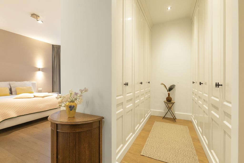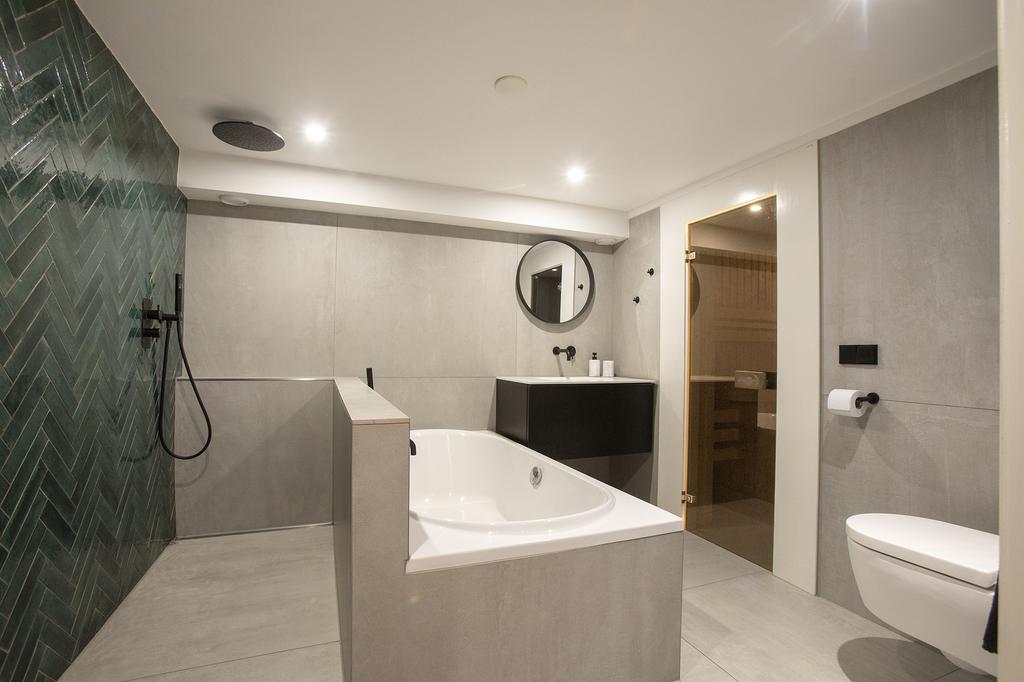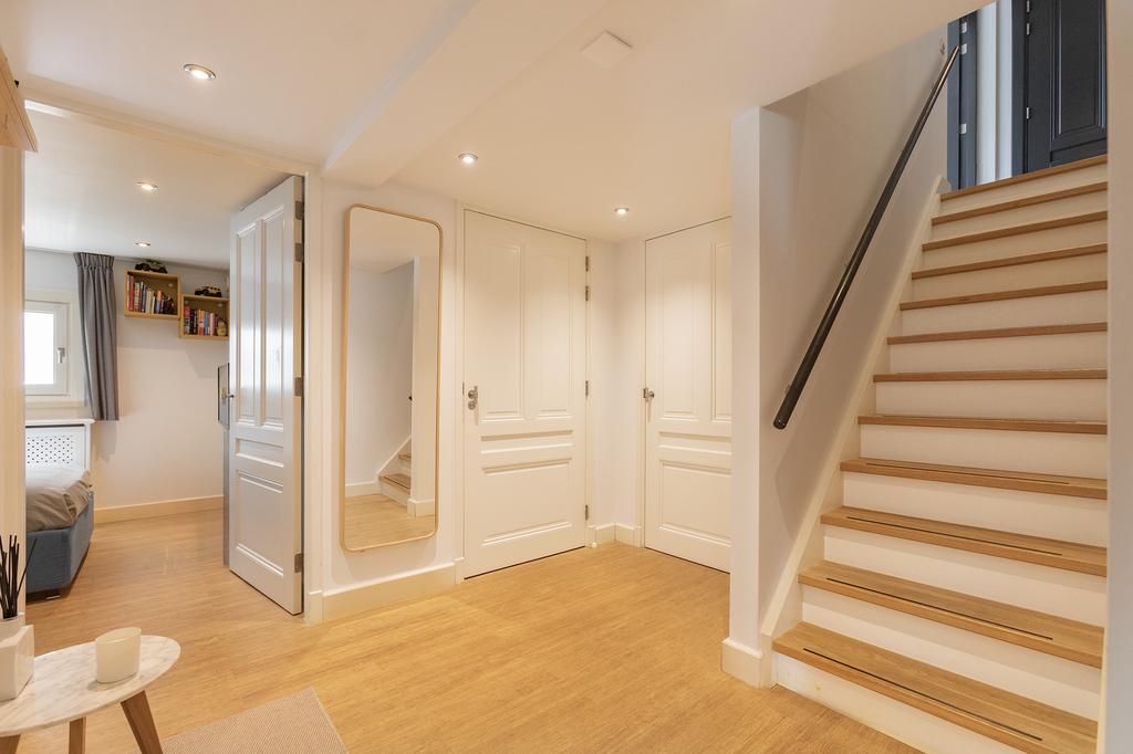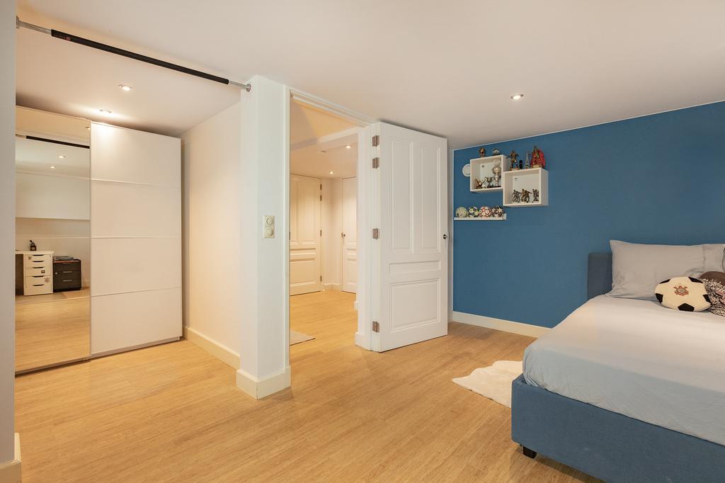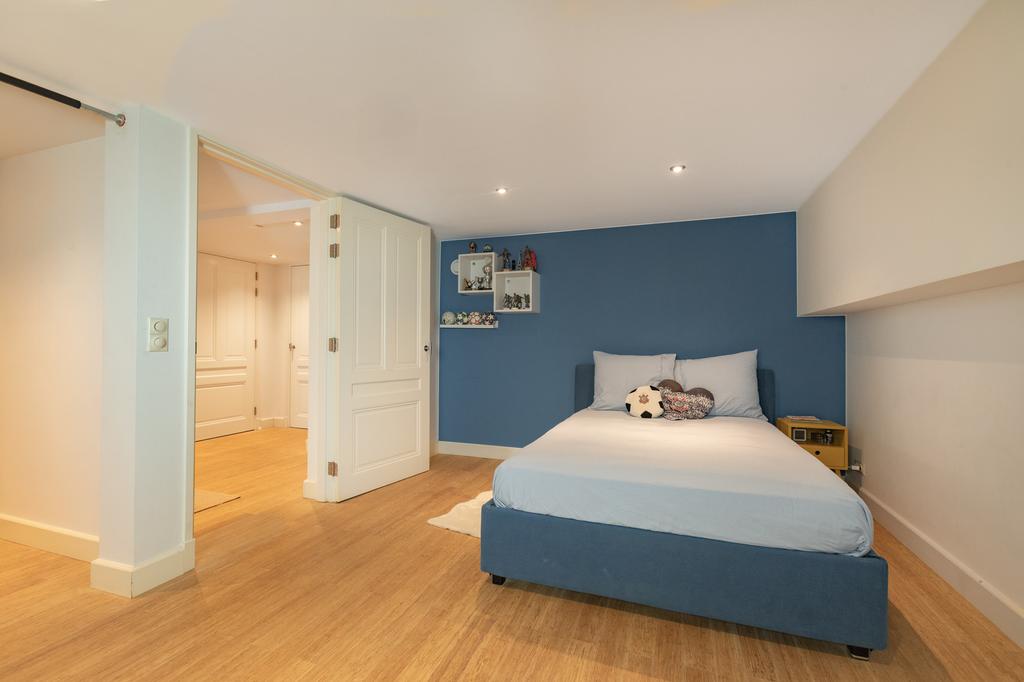 Via een brede trap kom je op de benedenverdieping, waar nog twee ruime slaapkamers liggen. Hier is het stil en constant qua temperatuur – perfect om in alle rust te slapen. Deze verdieping heeft ook een tweede badkamer met ligbad, inloopdouche, wc en vloerverwarming. En alsof dat nog niet genoeg is: aansluitend vind je een ruime privé sauna – favoriet bij gasten en kinderen. Ook handig: een aparte wasruimte en een royale inpandige berging, bereikbaar vanuit de woning én via de gemeenschappelijke hal (met trap of lift).