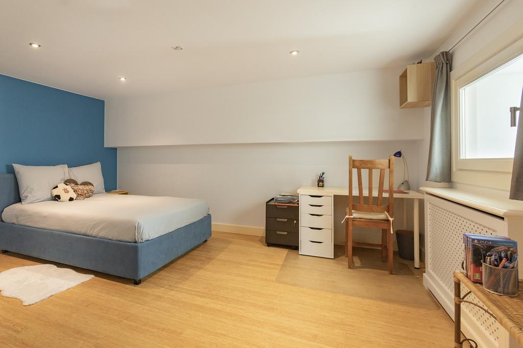 De ruime master bedroom ligt op de begane grond, met openslaande deuren naar de patio. Er is een grote inloopkast en directe toegang tot de badkamer. Hier vind je een dubbele wastafel, inloopdouche en een handdoekenradiator – allemaal netjes afgewerkt en goed onderhouden.