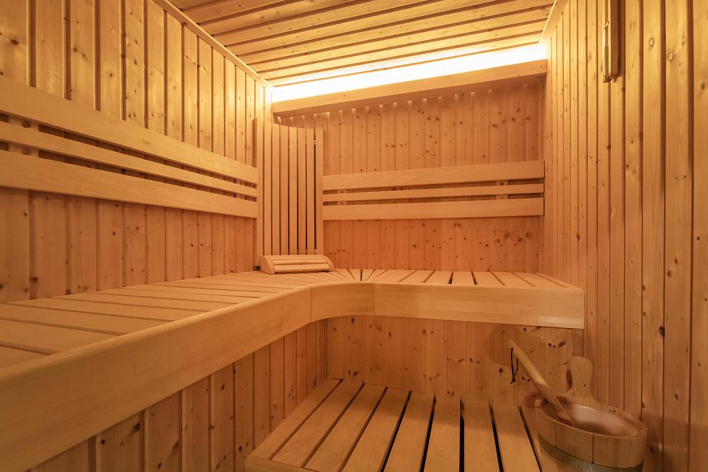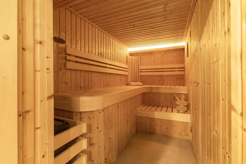 A broad staircase leads to the lower floor, which houses two additional spacious bedrooms. Here, it’s quiet, and the temperature remains consistently comfortable—ideal for restful sleep. This floor also includes a second bathroom equipped with a bathtub, walk-in shower, toilet, and underfloor heating. And as if that weren’t enough, there’s a private sauna—beloved by guests and children. Additionally, there’s a separate laundry room and a large indoor storage area, accessible both from the apartment and via the communal hallway (with stairs or elevator).