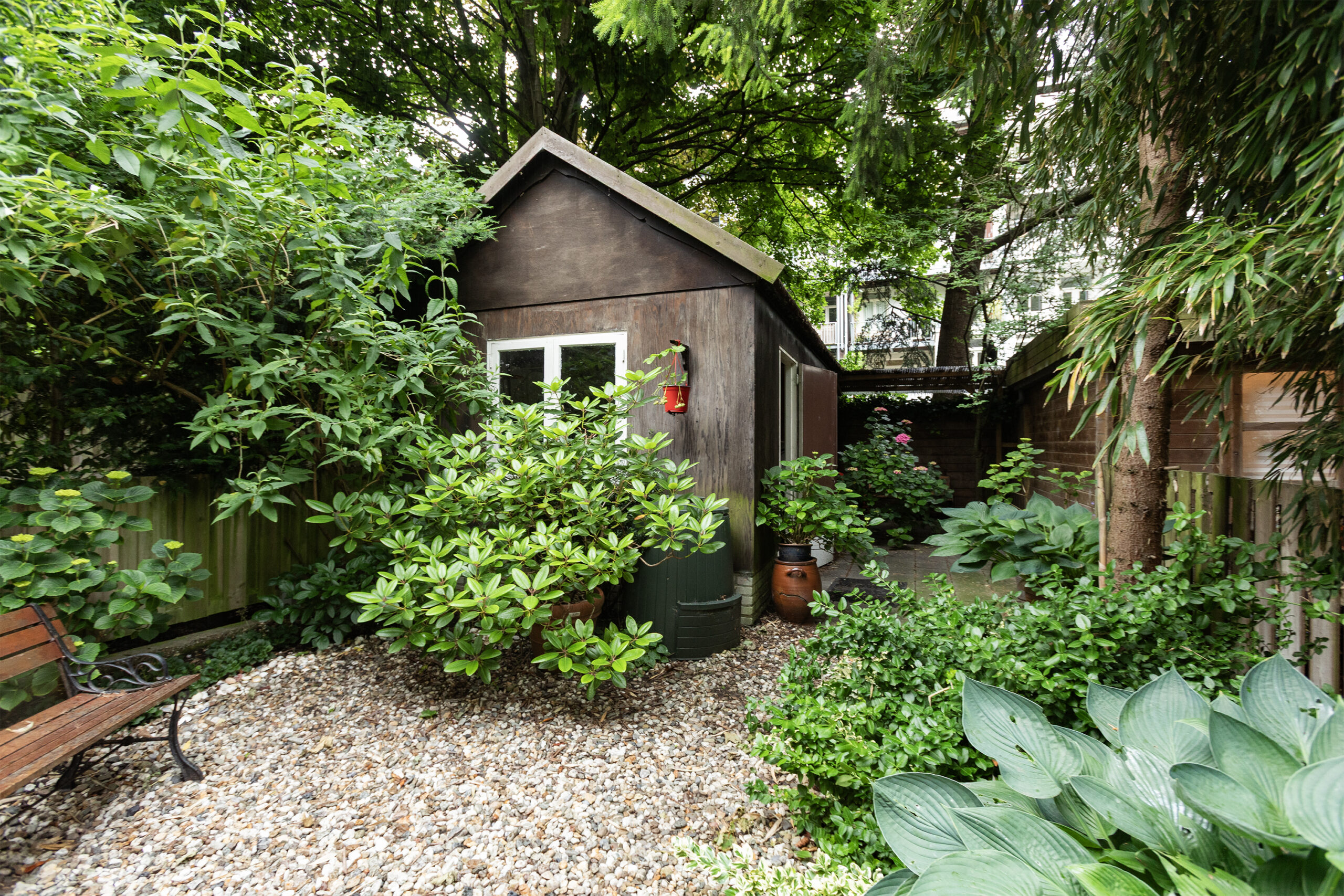 – Zeer royale diepe tuin met vrijstaande schuur