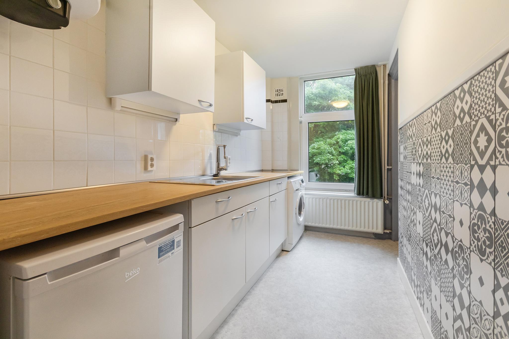 Woning op de 3e etage bestaande uit een woonkamer, slaapkamer, eenvoudige badkamer, toilet en keuken.