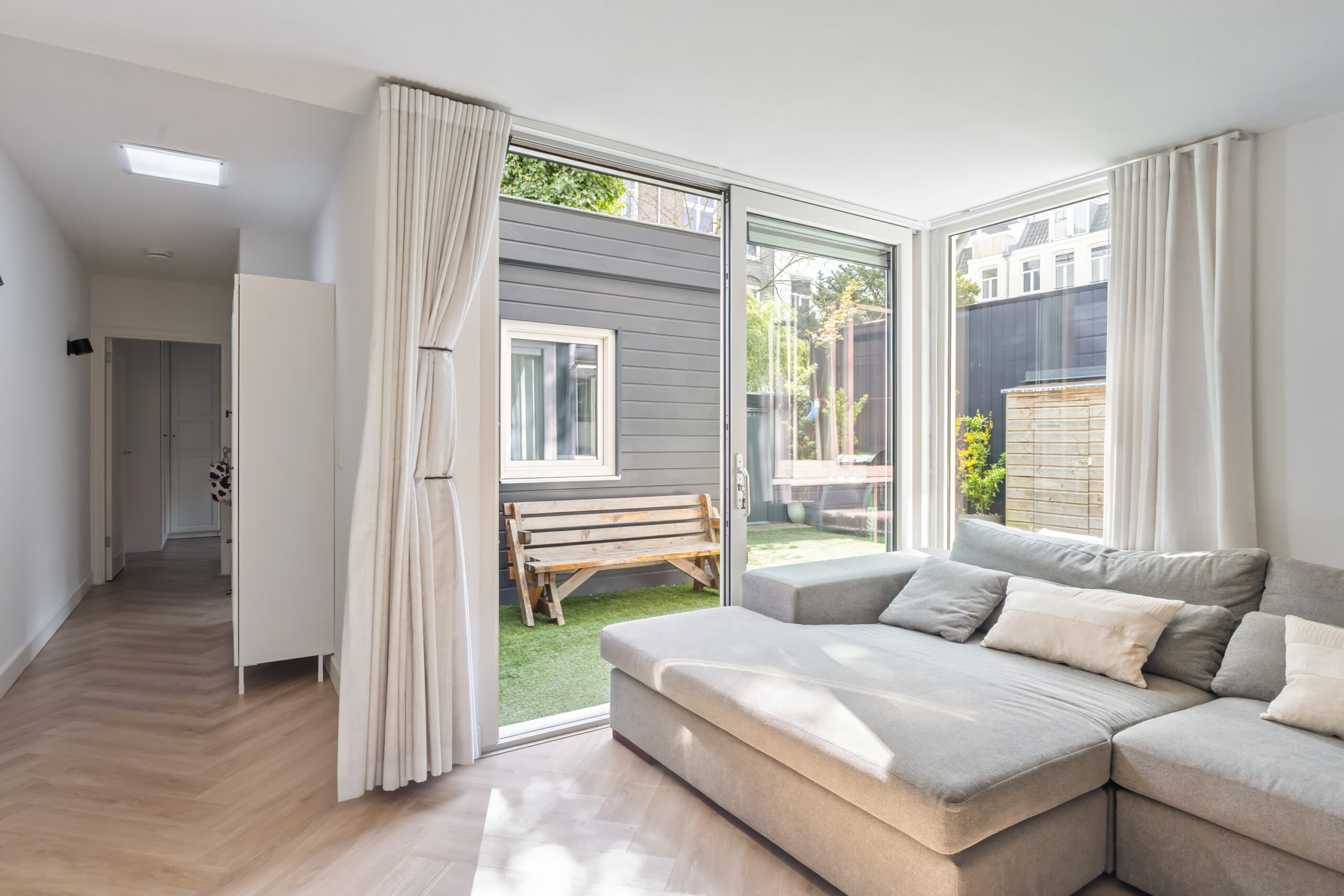De woning is aan de achterzijde uitgebouwd, waardoor extra ruimte is ontstaan en er een fijne verbinding is met de tuin. Een plek waar binnen en buiten naadloos in elkaar overlopen.