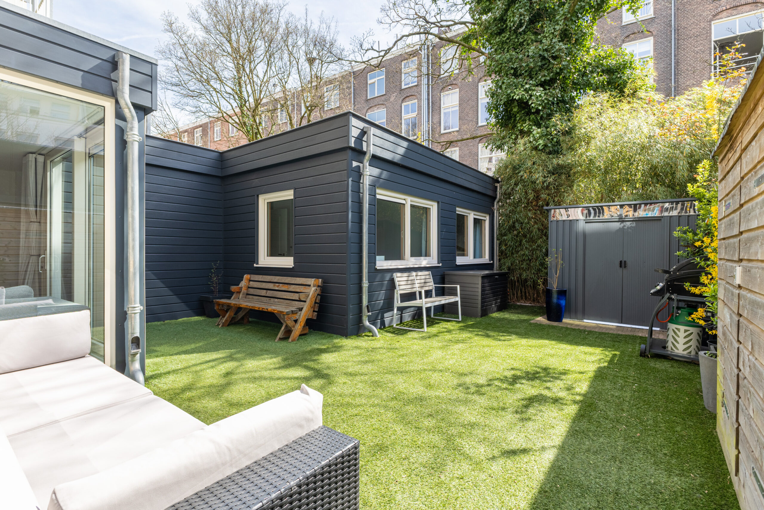 • Zonnige tuin op het zuiden, inclusief schuur en tuinkast, in totaal circa 52 m2.