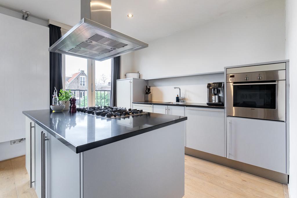 Het knusse balkon grenzende aan de slaapkamer biedt een rustige plek om te ontspannen en van de middagzon te genieten. Vanuit de eetkamer geven de openslaande deuren toegang tot een Frans balkon. Daarnaast ligt het Vondelpark letterlijk om de hoek en biedt een prachtige uitbreiding van je buitenruimte, hier kun je leker hardlopen, picknicken, meedoen aan een outdoor gymklas of de kinderen laten spelen in de klimtoestellen.