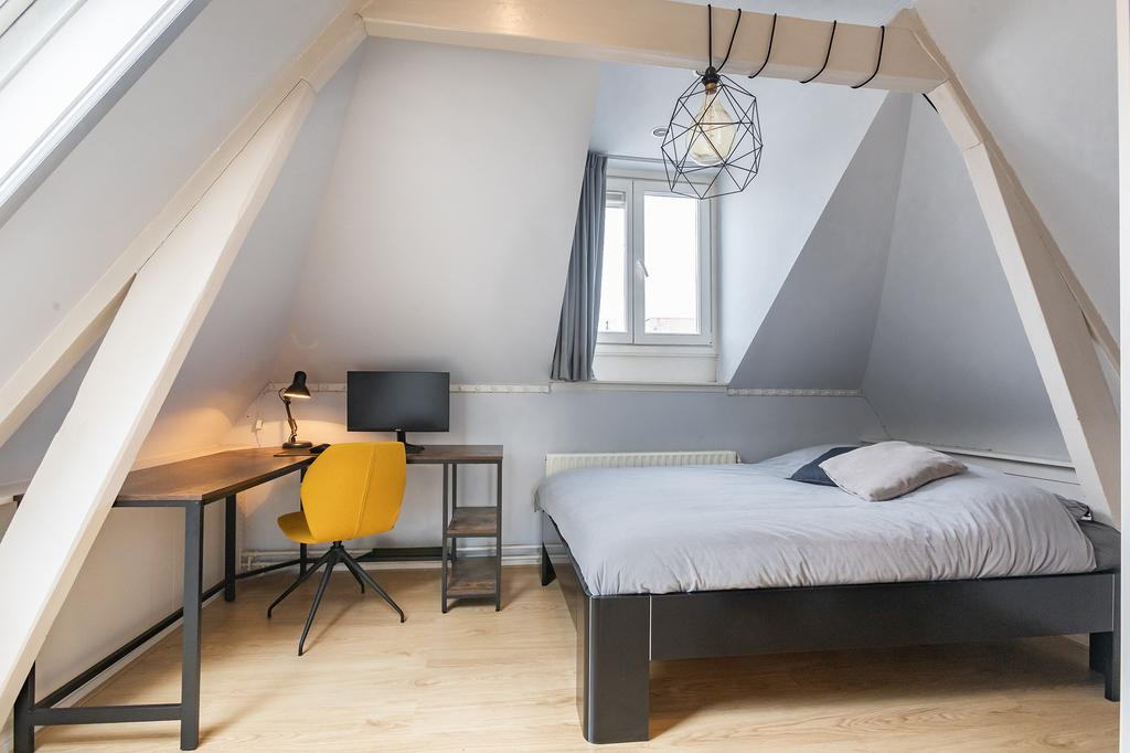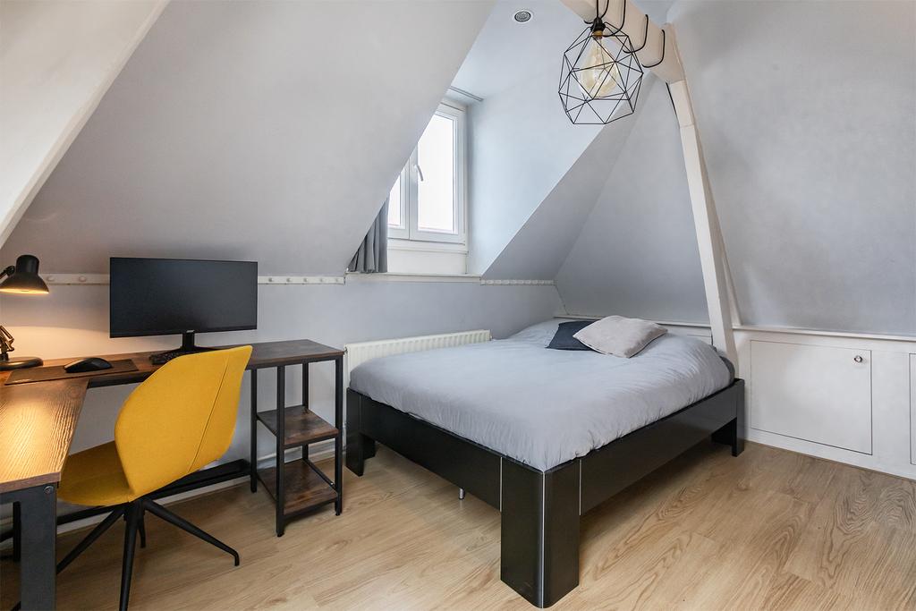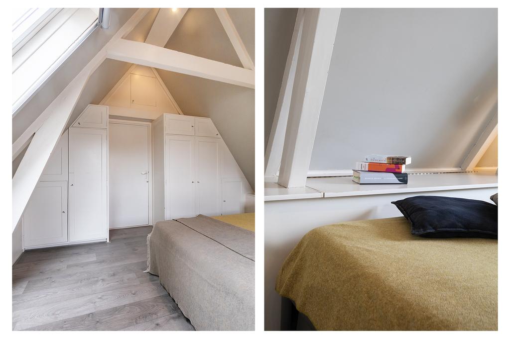 De bovenverdieping biedt twee charmante slaapkamers. De master bedroom aan de achterzijde beschikt over inbouwkasten en een knus balkon waar je kunt genieten van de middagzon. De tweede slaapkamer aan de voorzijde is perfect als kinderkamer, studeerkamer of in te richten als walk-in closet.