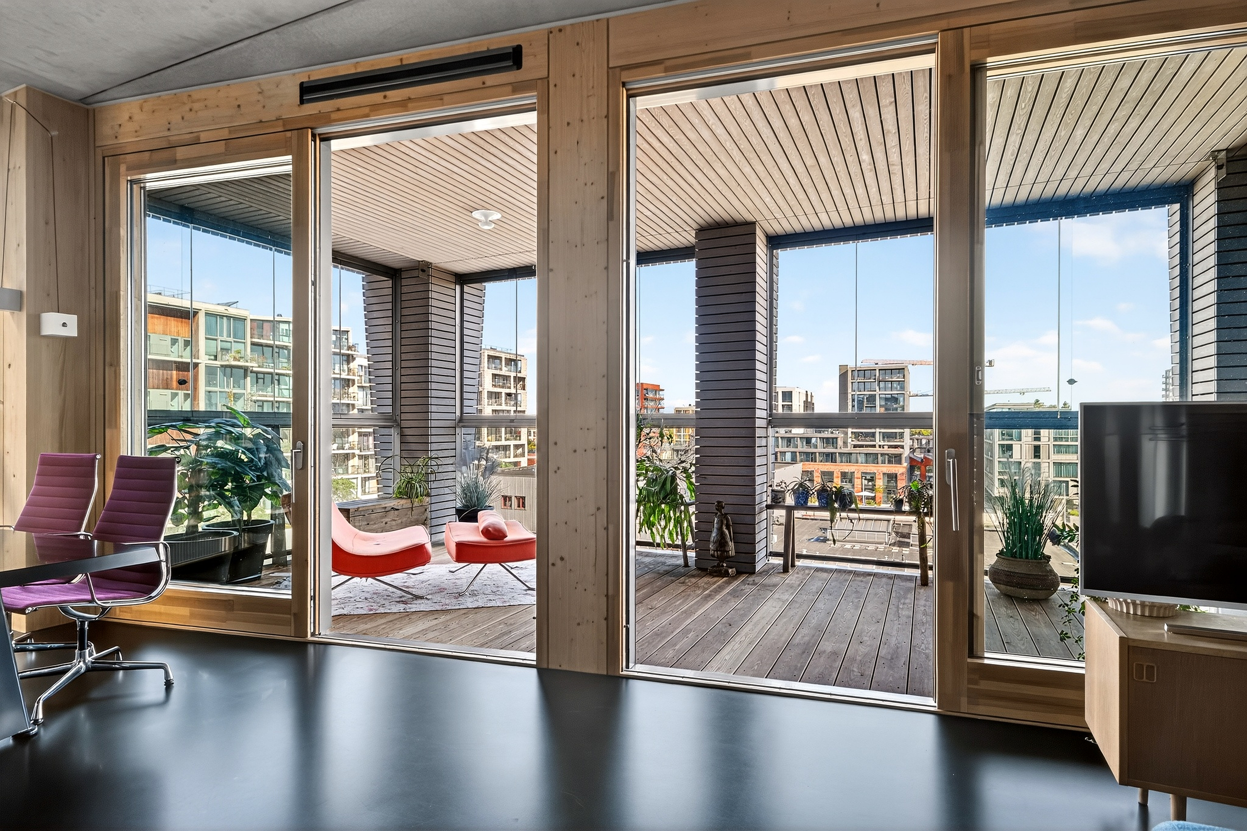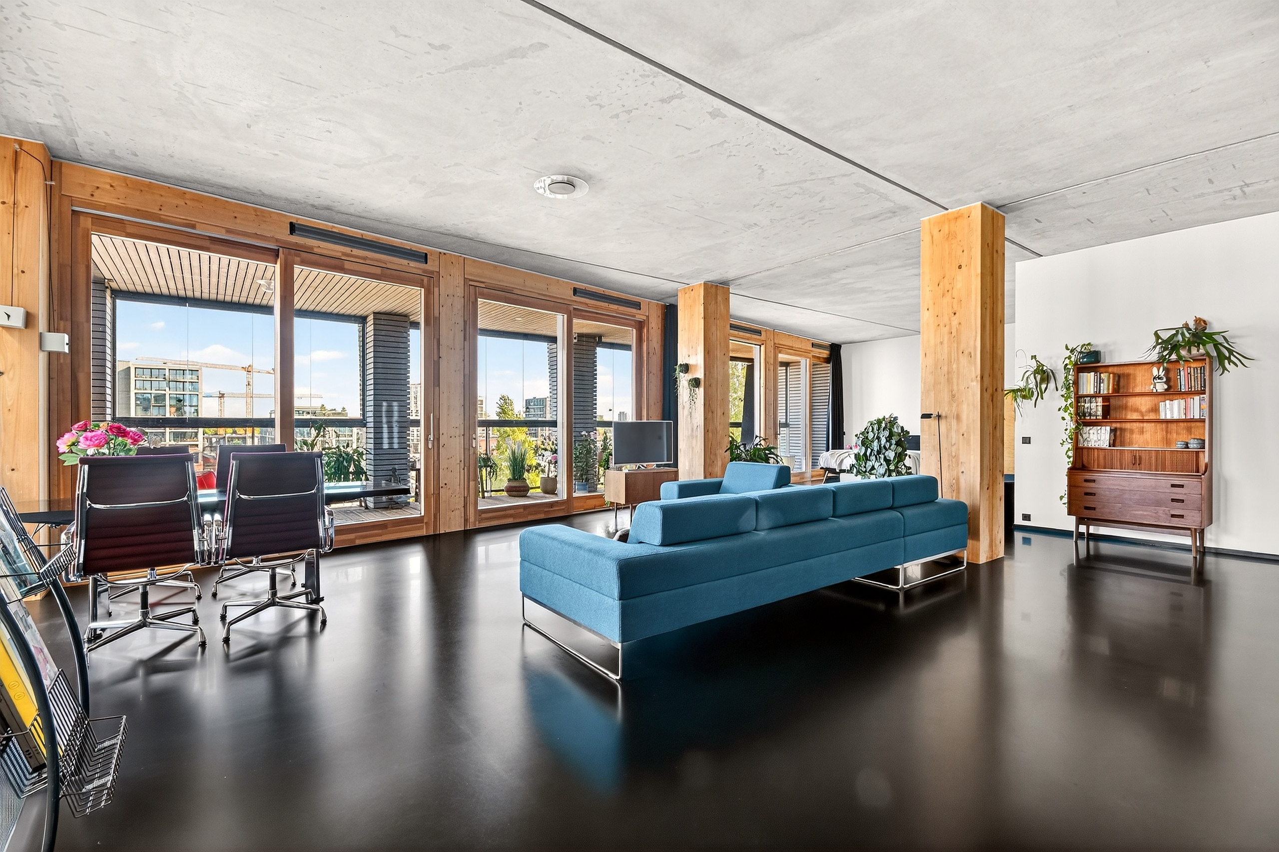 Step into this extraordinary loft where living, life, and enjoyment come together in one open space. The home breathes openness thanks to the generous ceiling height of 3 meters and the fully glazed façade with sliding doors that provide stunning natural light and a direct connection to the outdoors.