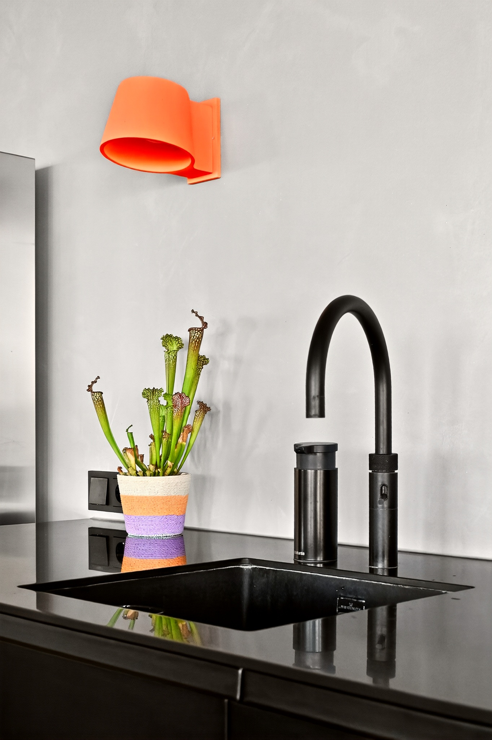 – Custom-made floating kitchen (2020) with induction, combi-oven, dishwasher, and Quooker