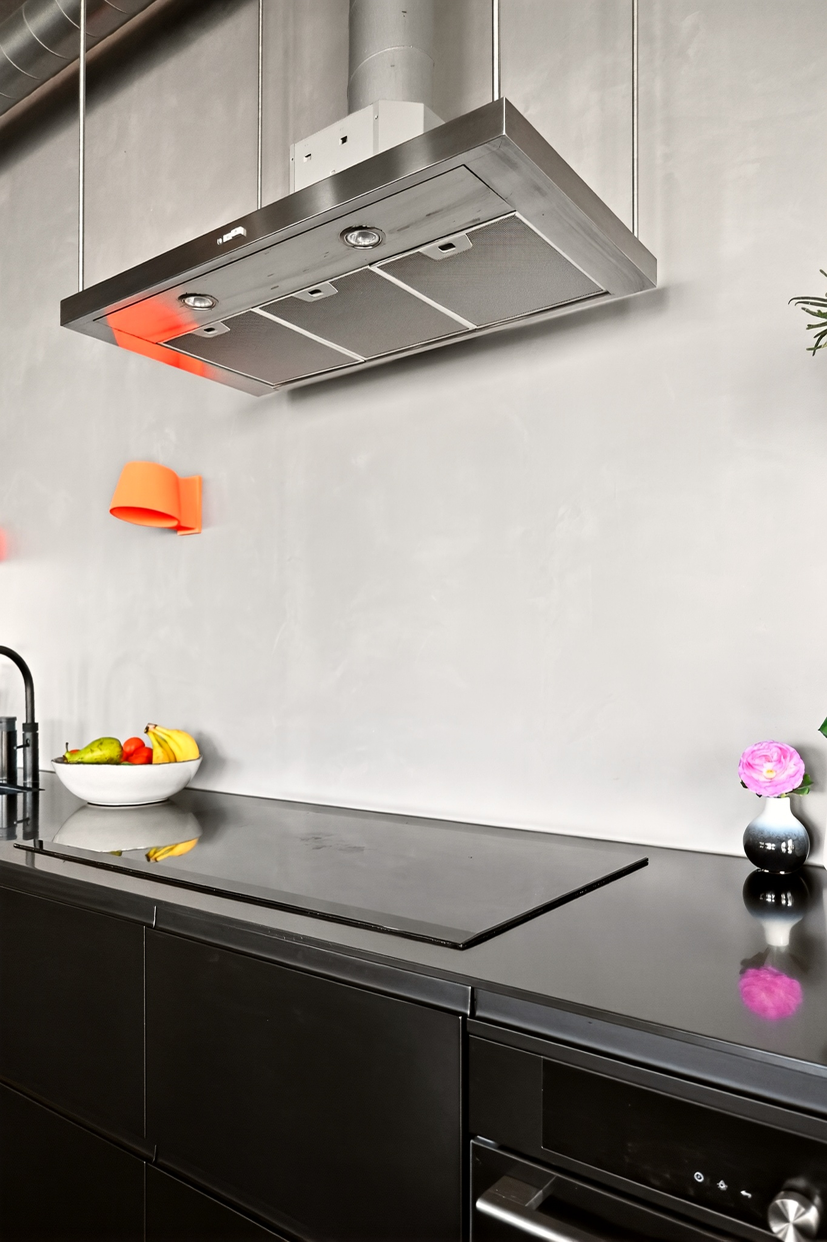 De zwevende keuken is strak vormgegeven en volledig op maat gemaakt. Met moderne inbouwapparatuur (inductiekookplaat, combi-oven, vaatwasser, Quooker) is koken hier zowel praktisch als stijlvol.