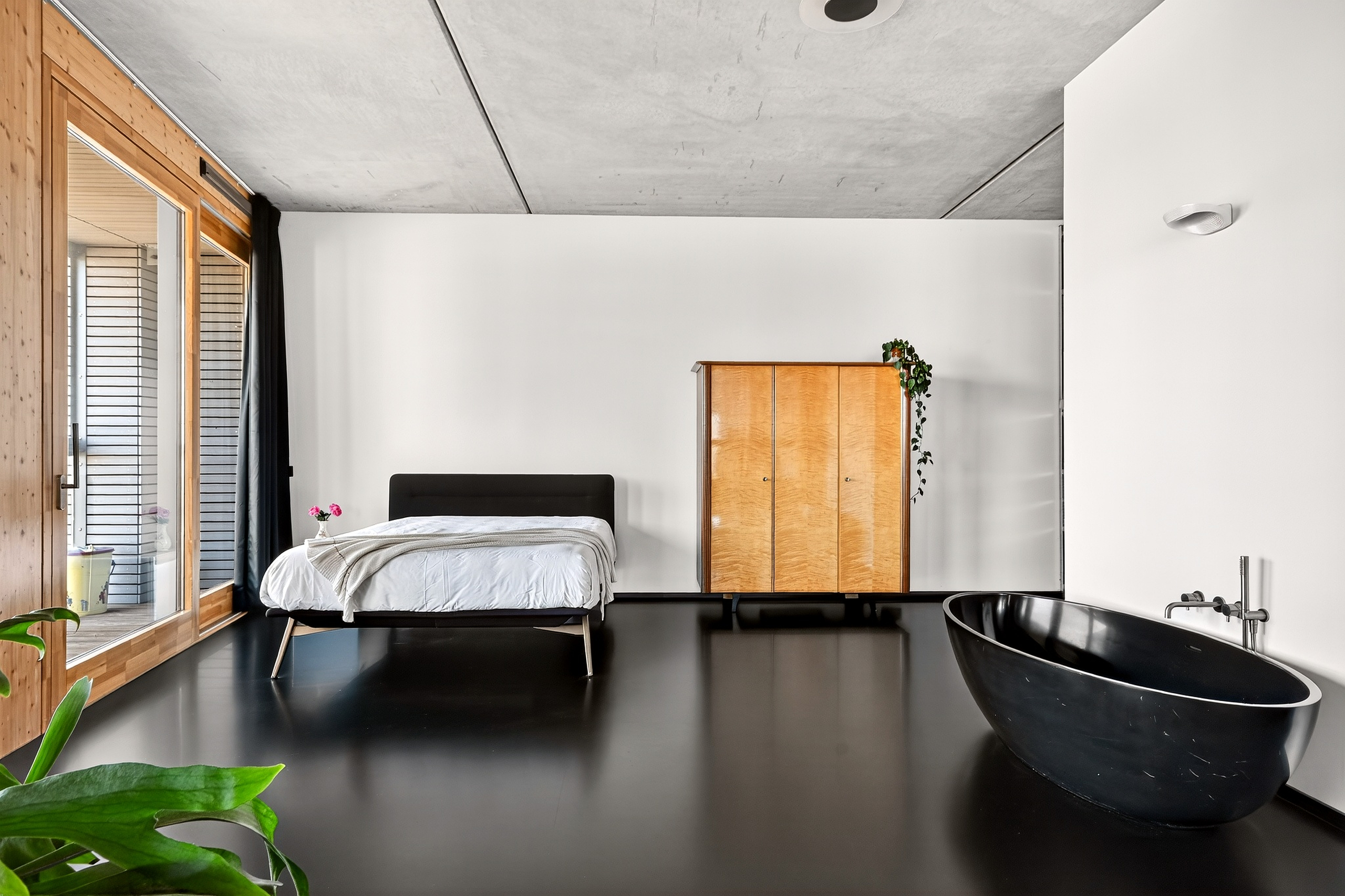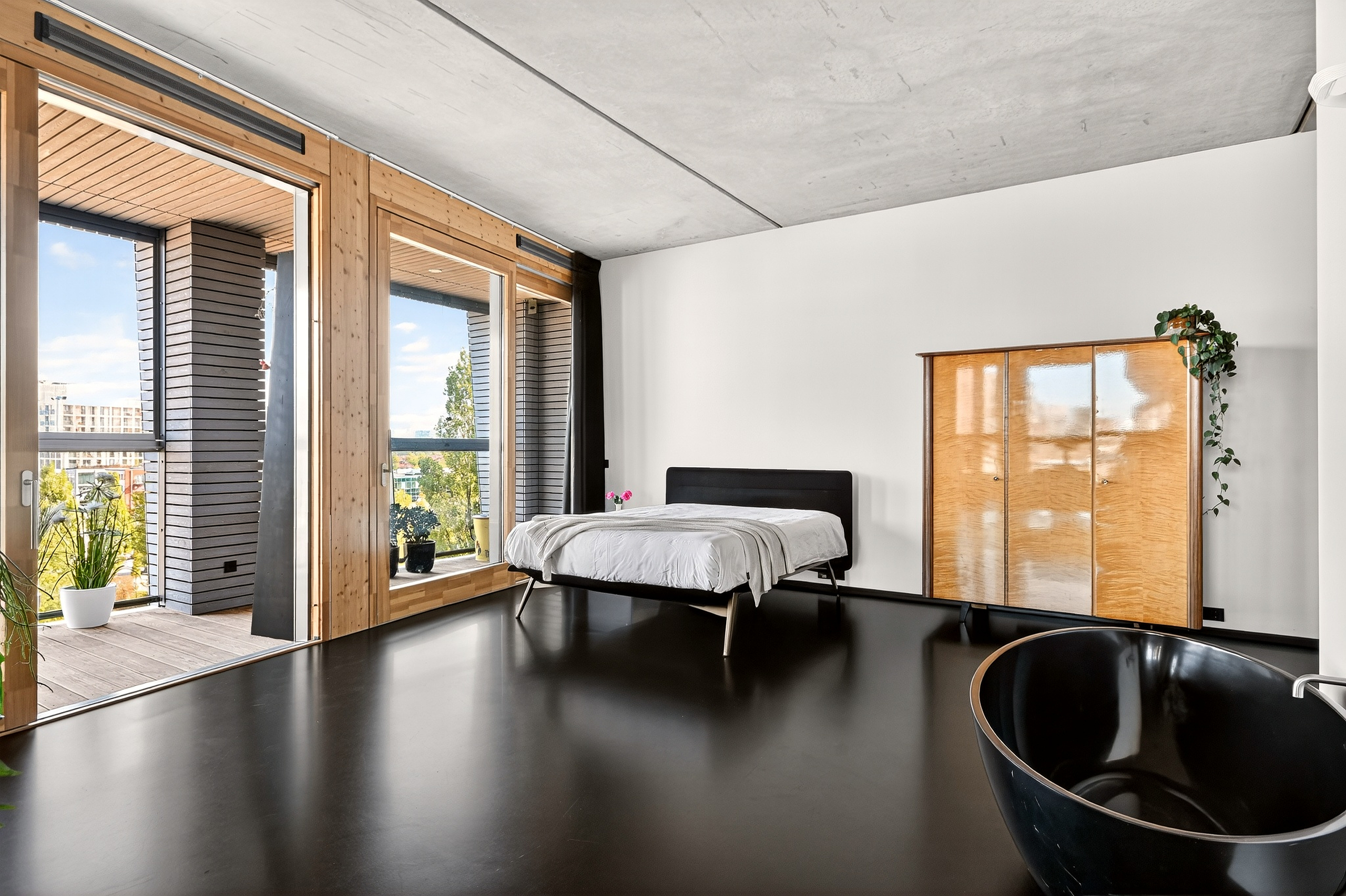 The open character makes this home truly unique. The bed and bath are freestanding, giving you that authentic loft feeling: modern, bold, and inspiring. At the same time, it offers the perfect canvas for anyone who wants to create their own vision of living. With just a few adjustments, you can easily create one or more rooms, without compromising the exceptional spaciousness that makes this apartment so attractive.