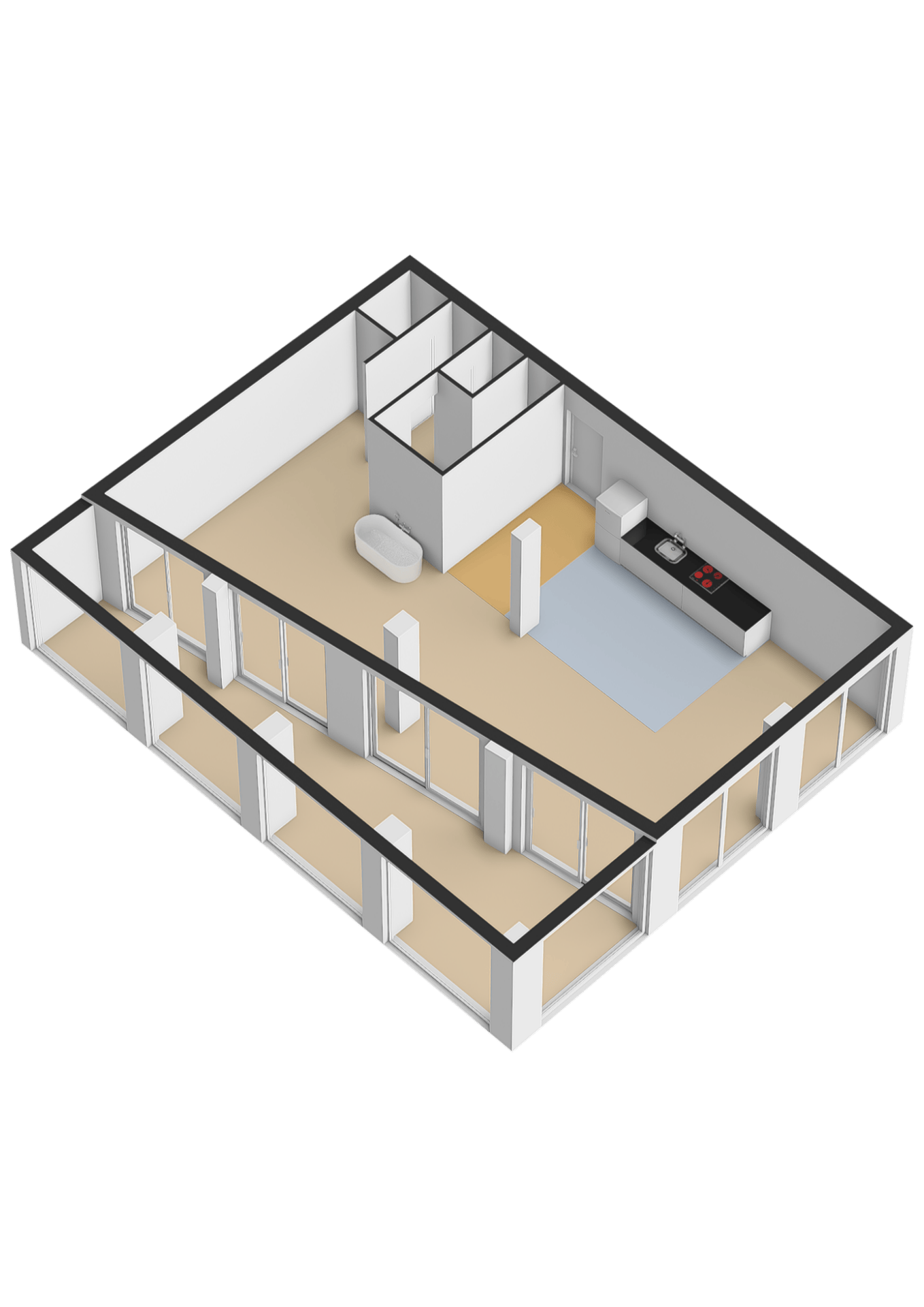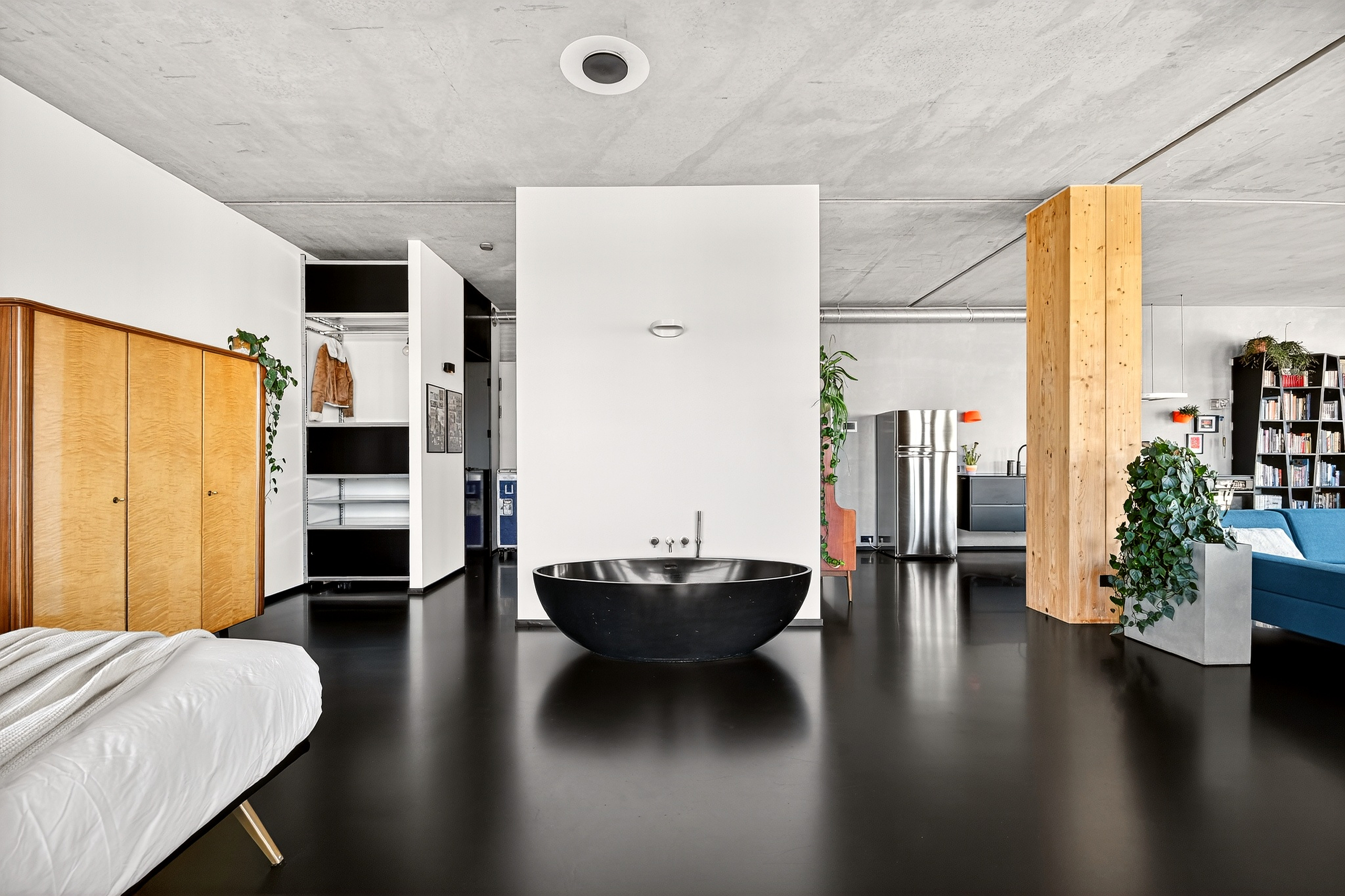 Het open karakter maakt deze woning zo uniek. Het bed en bad staan vrij, waardoor je dat echte loftgevoel ervaart: modern, gedurfd en inspirerend. Tegelijkertijd biedt dit de ideale basis voor wie zijn of haar eigen woonvisie wil realiseren. Met een paar ingrepen creëer je eenvoudig één of meerdere kamers, zonder af te doen aan de bijzondere ruimtelijkheid die dit appartement zo aantrekkelijk maakt.