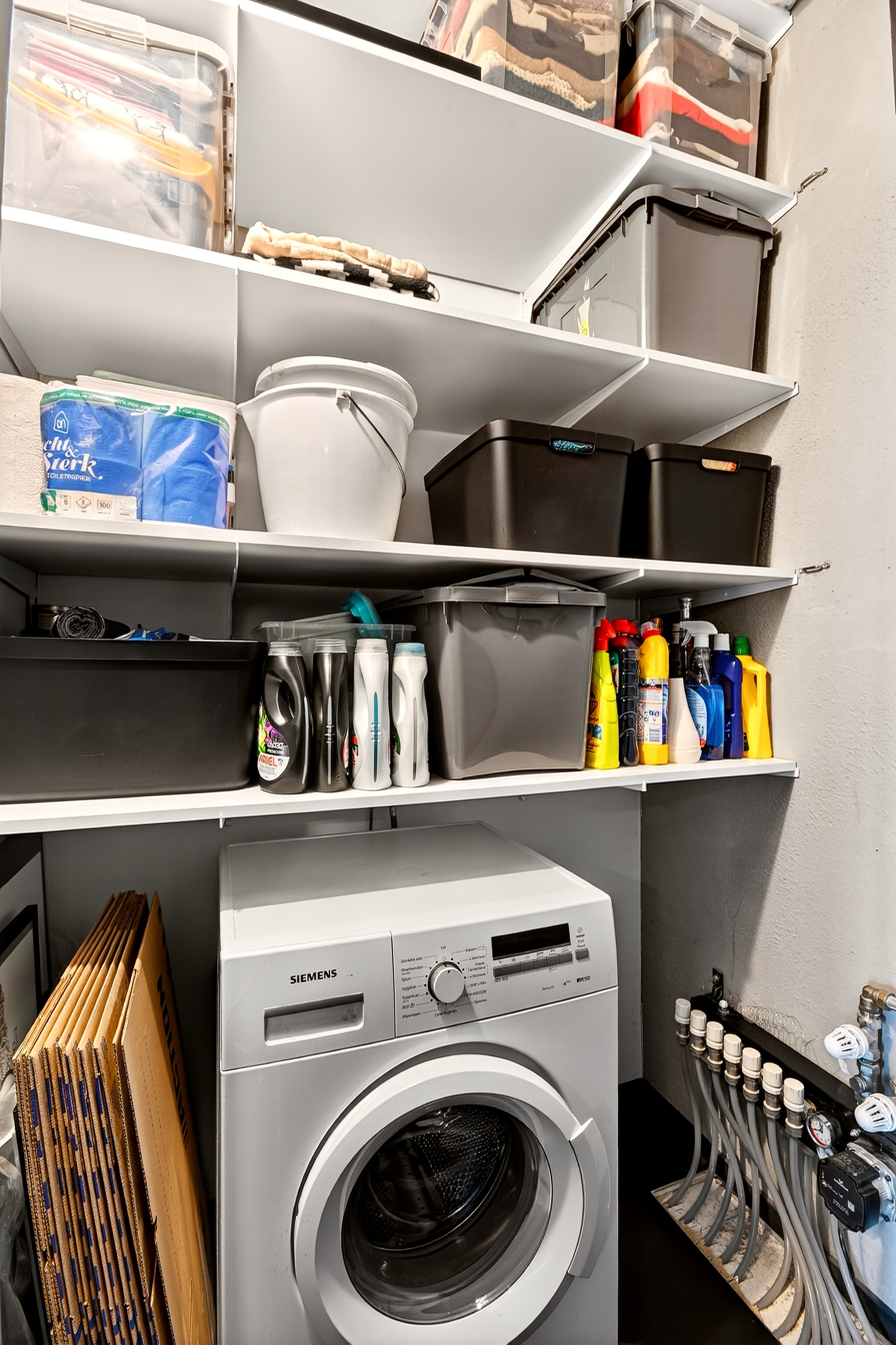The loggia is fully functional, with electricity and a water connection. This makes it not only a wonderful place to relax or dine, but also a highly usable extension of the living area throughout most of the year. Create your own indoor-outdoor feeling with the large sliding panels that can be opened or closed to your liking.
