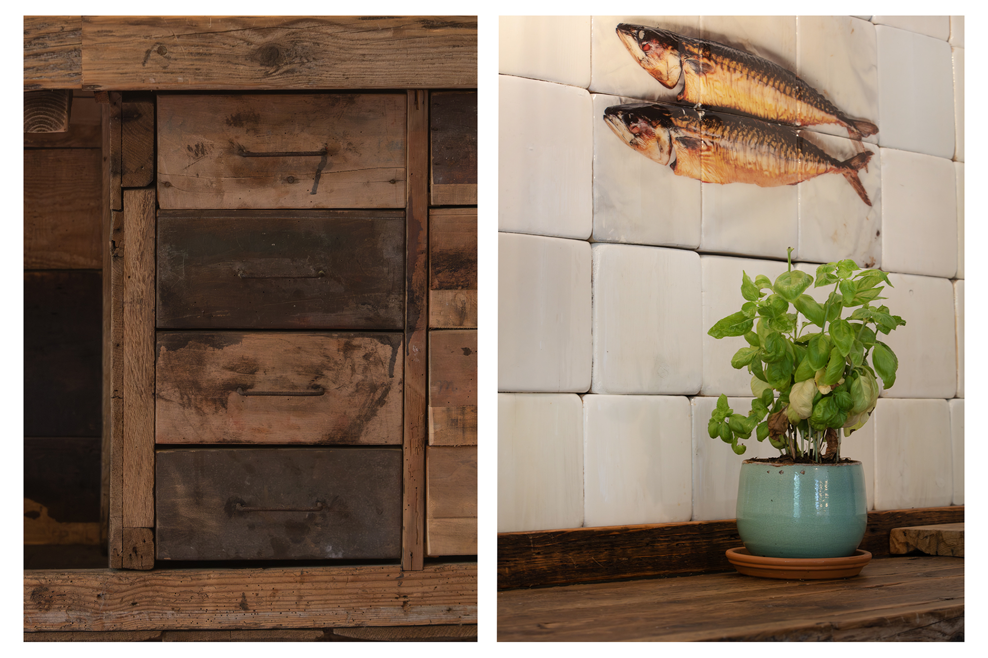 The west-facing garden is generously sized with several terraces, a covered area made of reclaimed ship’s planks, a firepit, electricity, and an outdoor water tap. Whether you want to sit, play, garden, or simply relax — it’s all possible.