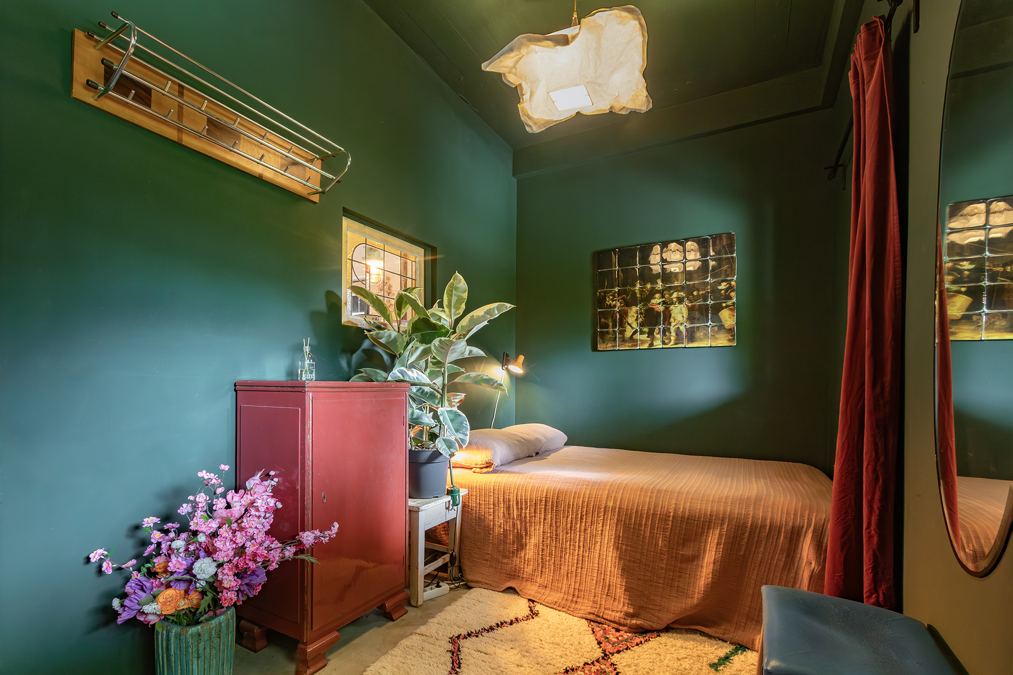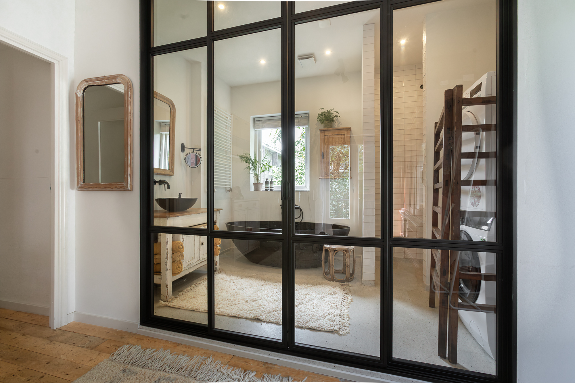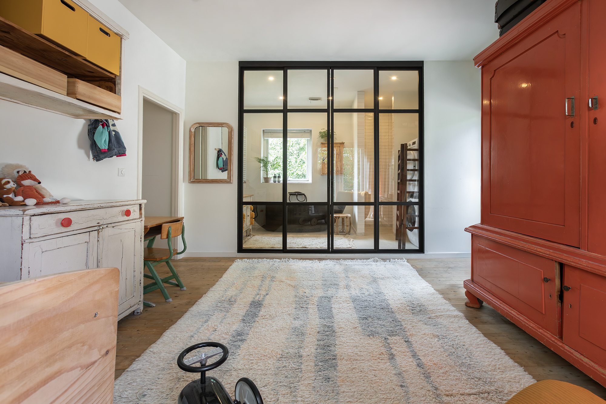 Beneden is een vierde slaapkamer, aan de achterzijde van het huis. Deze ruimte leent zich ook goed als werk- of atelierruimte, zeker in combinatie met de tweede keuken en een eigen entree. Dat maakt de begane grond flexibel inzetbaar, naar wens van de bewoners.
