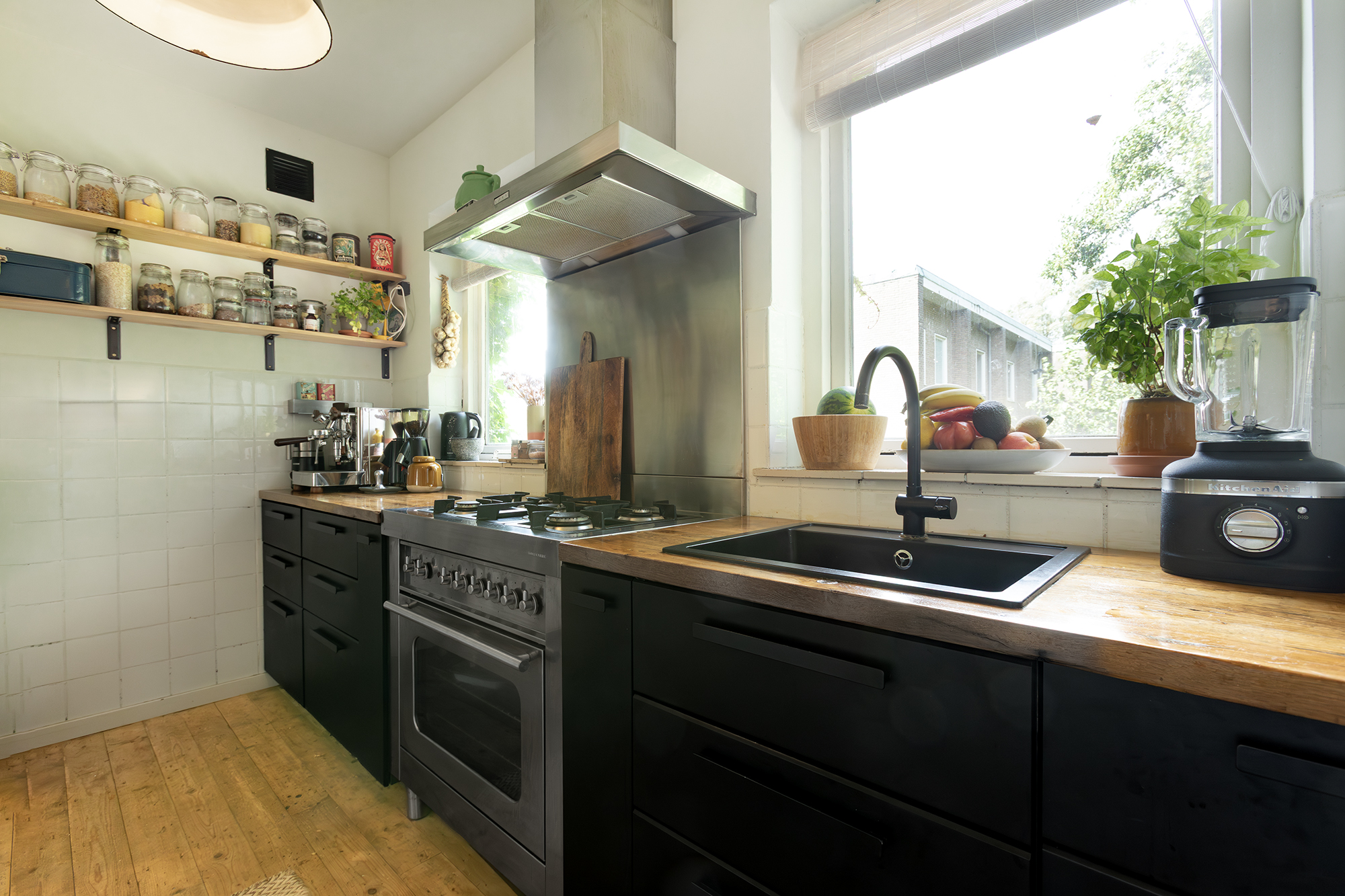 Een woning die direct opvalt. Vrijstaand, omringd door groen, met hoge plafonds, veel daglicht en een indeling die je niet vaak tegenkomt. Dit voormalige conciërgehuis is met zorg verbouwd tot een comfortabel familiehuis met karakter. Het huis biedt ruimte aan een gezin, maar ook aan wie thuis werkt of zoekt naar flexibiliteit. Denk aan dubbele bewoning, een studio, praktijk of atelier. En dat alles in een rustige jaren ’30 buurt, naast een speelbos en vlak bij het centrum van Zaandam.