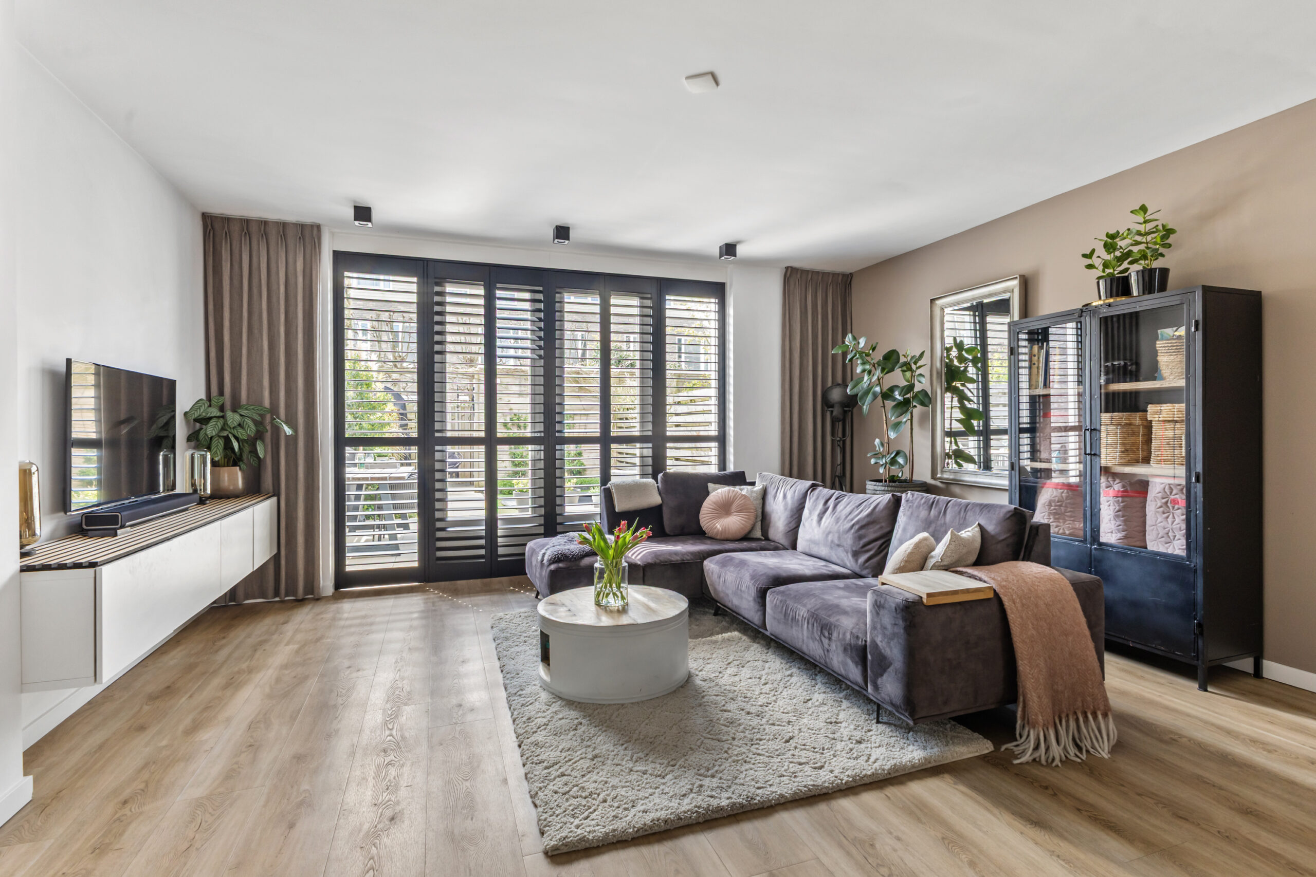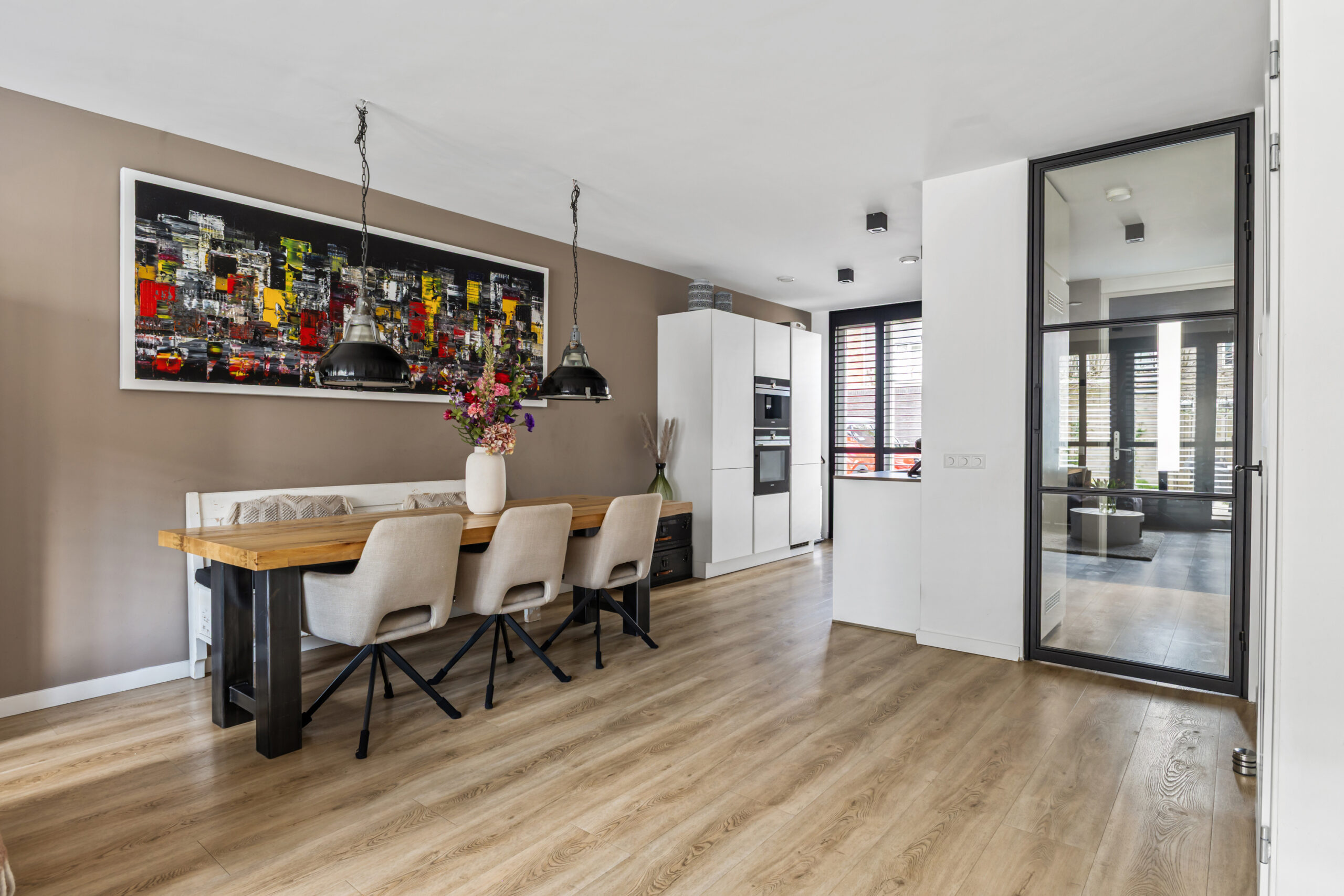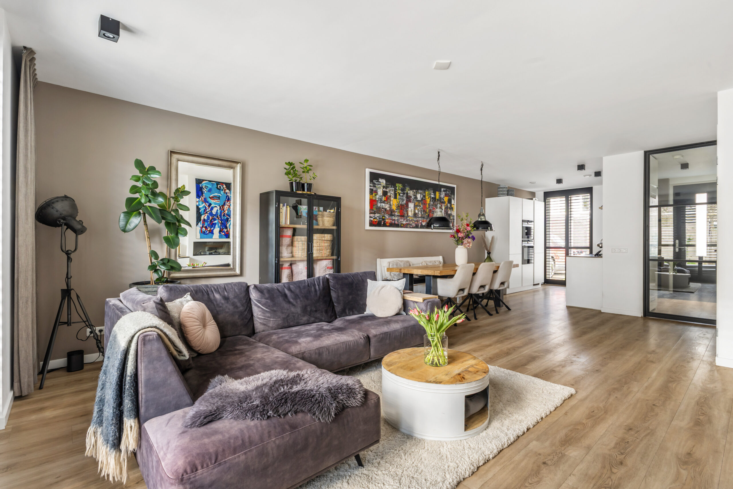 De woonkamer ligt aan de achterzijde en is heerlijk licht door de grote ramen. Hier kijk je uit op de tuin en voelt het meteen rustig. Er is genoeg ruimte voor een royale zithoek en een grote eettafel.
