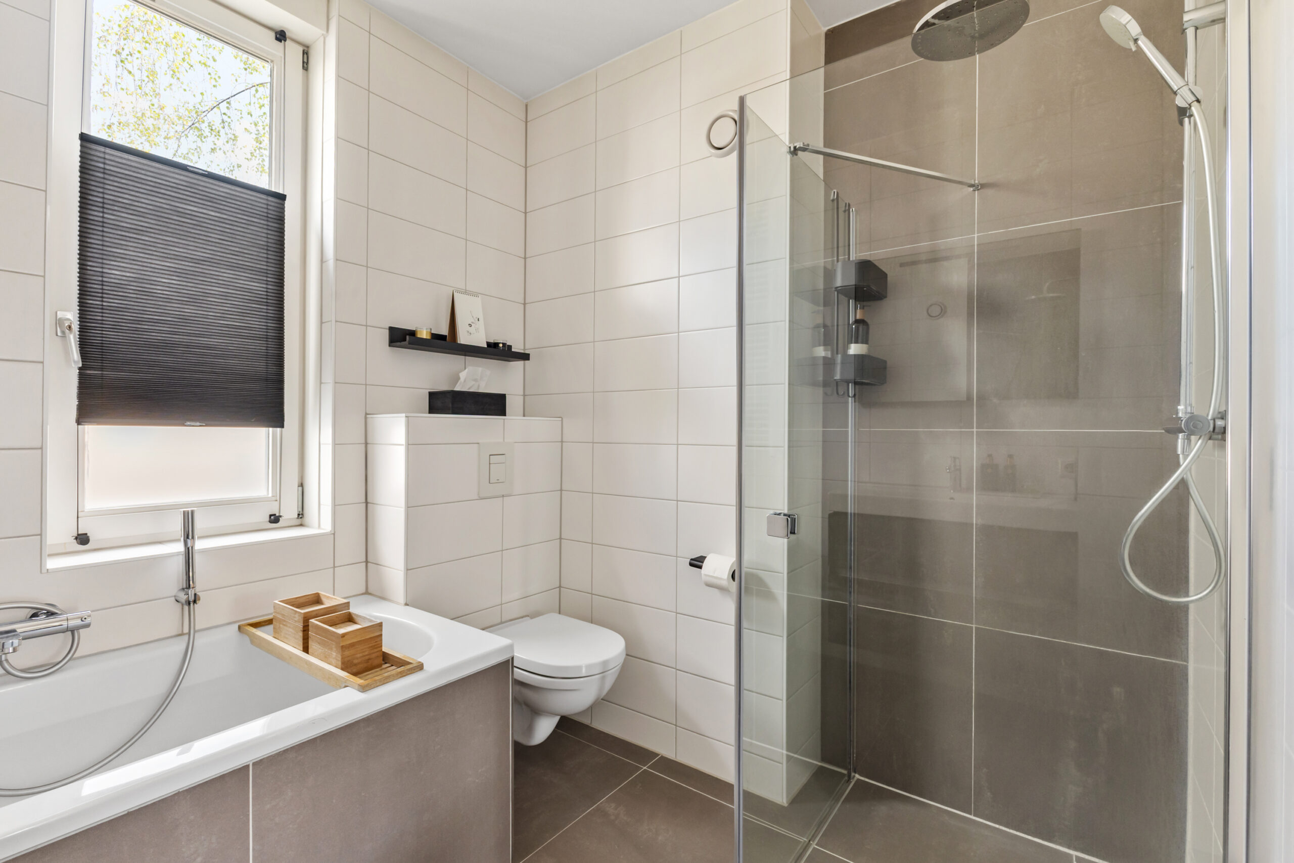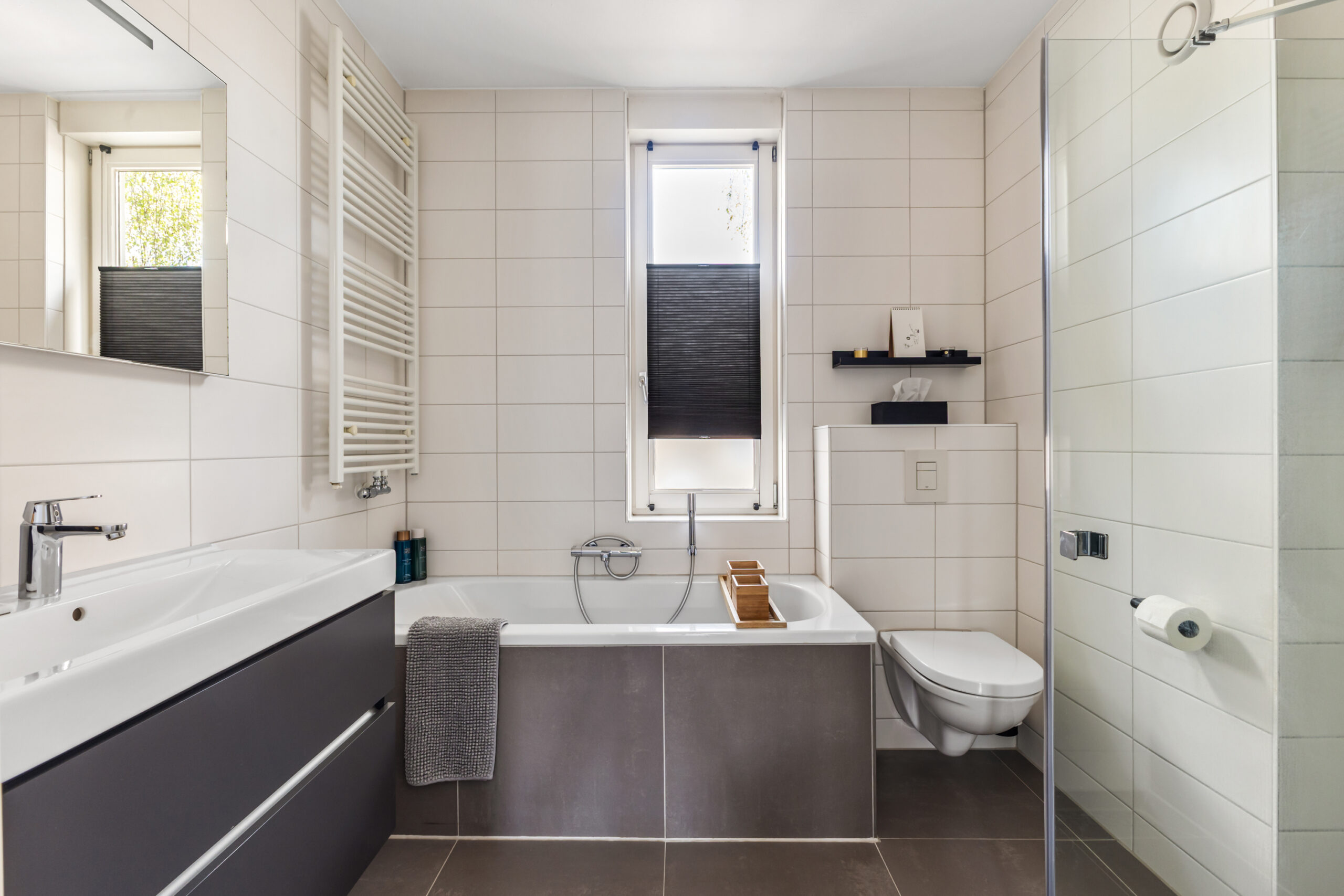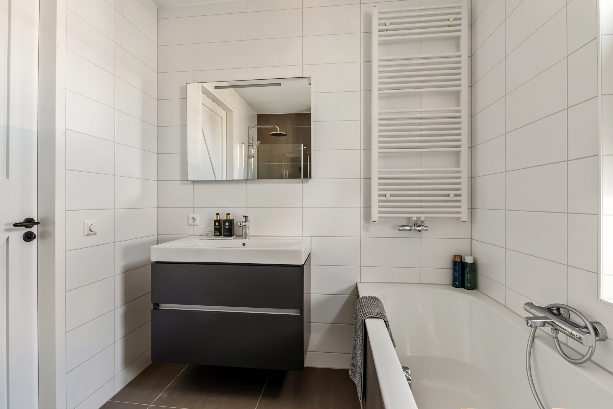 De badkamer is compleet uitgevoerd en netjes afgewerkt. Een fijne plek waar je de dag begint en afsluit.