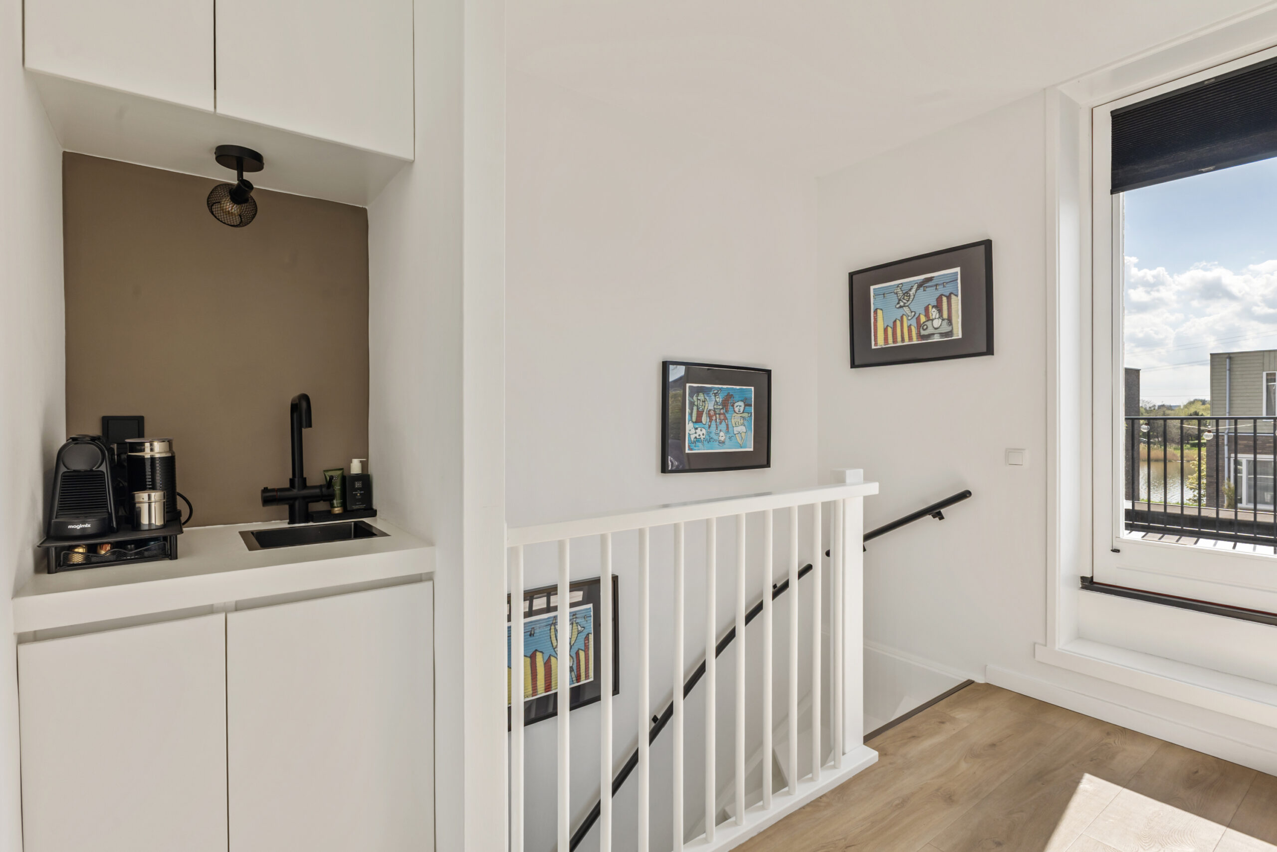 De pantry op deze verdieping maakt het extra comfortabel. Even snel een kop koffie, thee of een koel drankje pakken zonder naar beneden te hoeven. Het klinkt klein, maar voelt in het dagelijks gebruik juist heel luxe.
