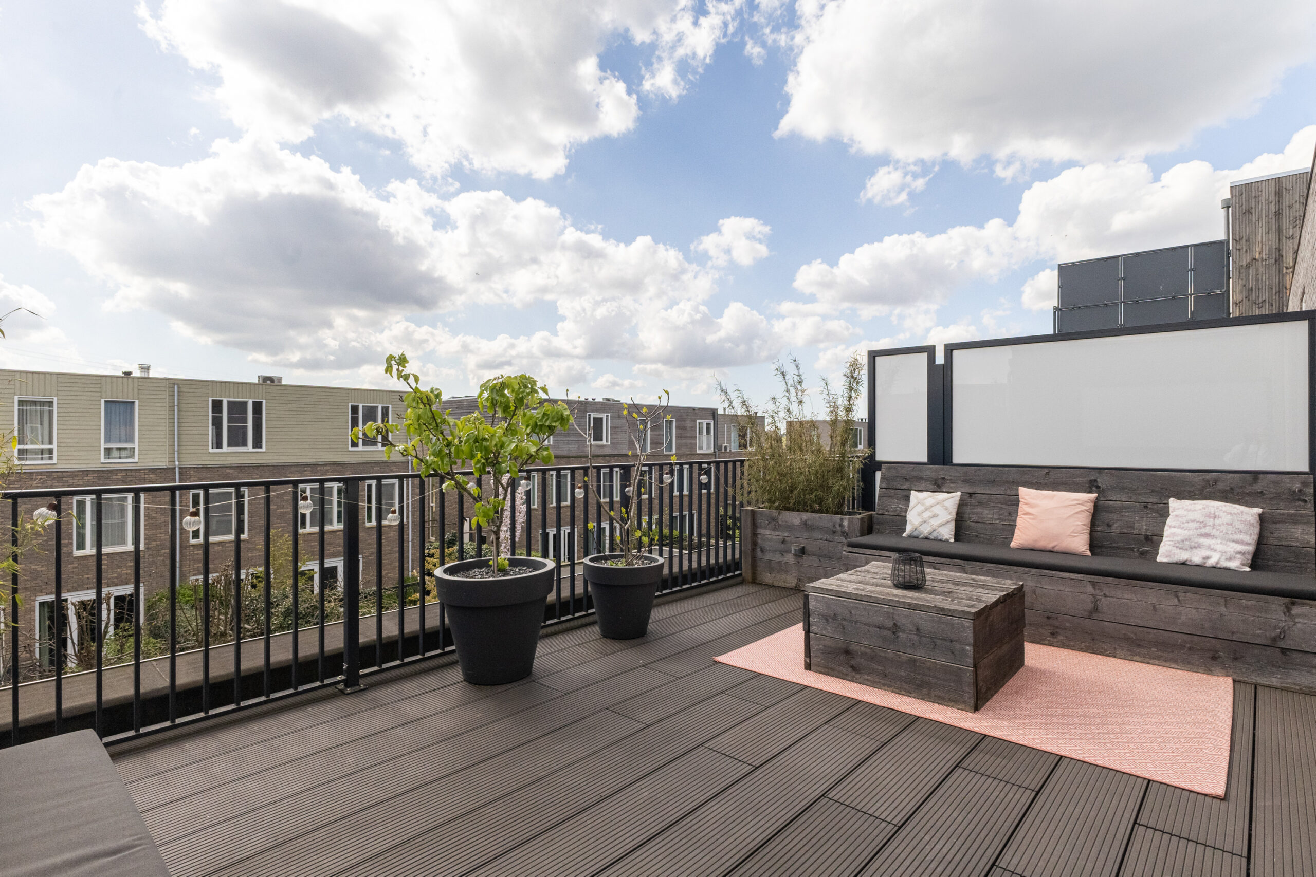 Het dakterras maakt het echt af. Dit is niet zomaar een extra buitenruimte, maar een plek waar je de hele dag zon hebt en veel privacy ervaart. Of je nu wilt ontbijten in de ochtendzon of ’s avonds nog even buiten zit, het kan hier allemaal.