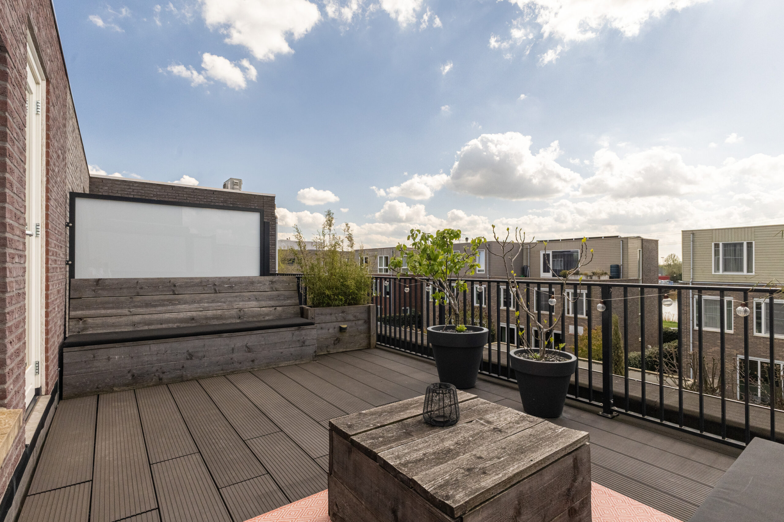 The roof terrace completes the home. This is not just an extra outdoor space, but a place where you have sun all day and a lot of privacy. Whether you want to have breakfast in the morning sun or sit outside in the evening, it is all possible here.