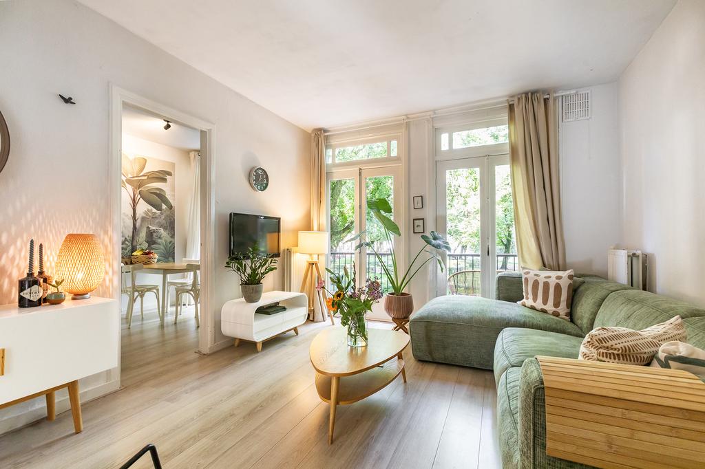 As you step into the living room, you are immediately treated to a beautiful view over the park in front of the house. Thanks to the large French doors, a lot of daylight enters, creating a light and spacious atmosphere. The living room directly adjoins the front balcony, where you can enjoy the evening sun in the summer. The laminate flooring provides a warm look, and the French doors make the space extra airy and cool in the summer.