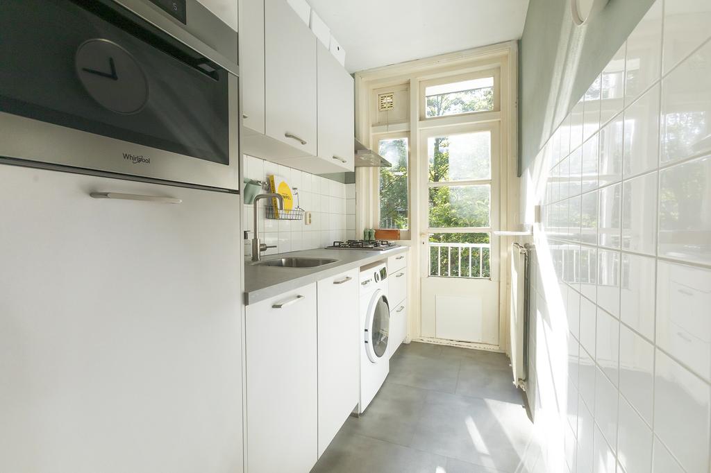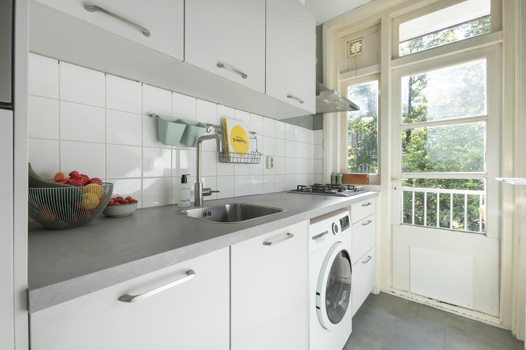 De moderne keuken aan de achterzijde van de woning is in 2021 vernieuwd en biedt alles wat je nodig hebt. Met een ingebouwde combi-magnetron, vaatwasser en voldoende opbergruimte is deze keuken zowel praktisch als stijlvol. Vanuit de keuken stap je zo het balkon op, waar je heerlijk kunt dineren met uitzicht op de groene binnentuin. De keuken biedt je alle ruimte om te koken terwijl je contact houdt met je gezin of gasten.