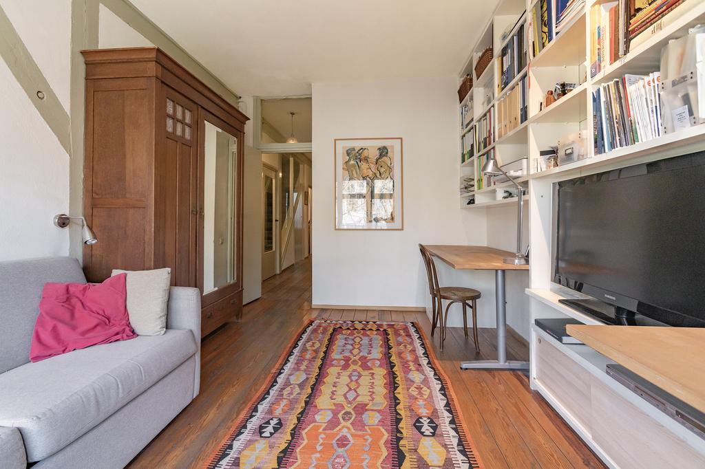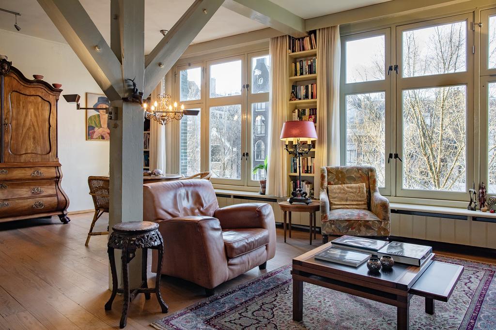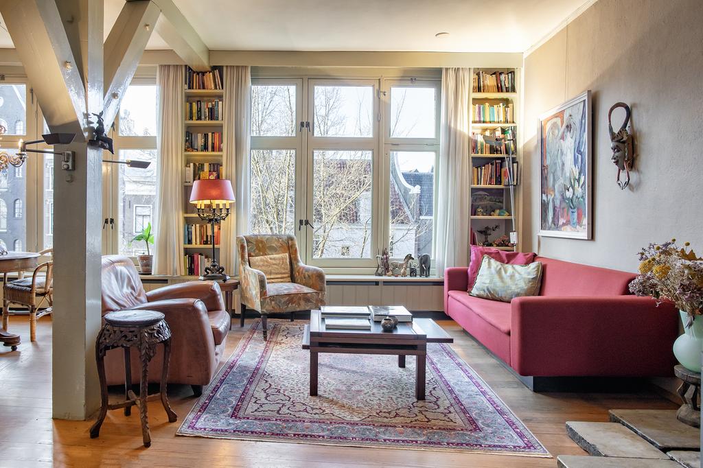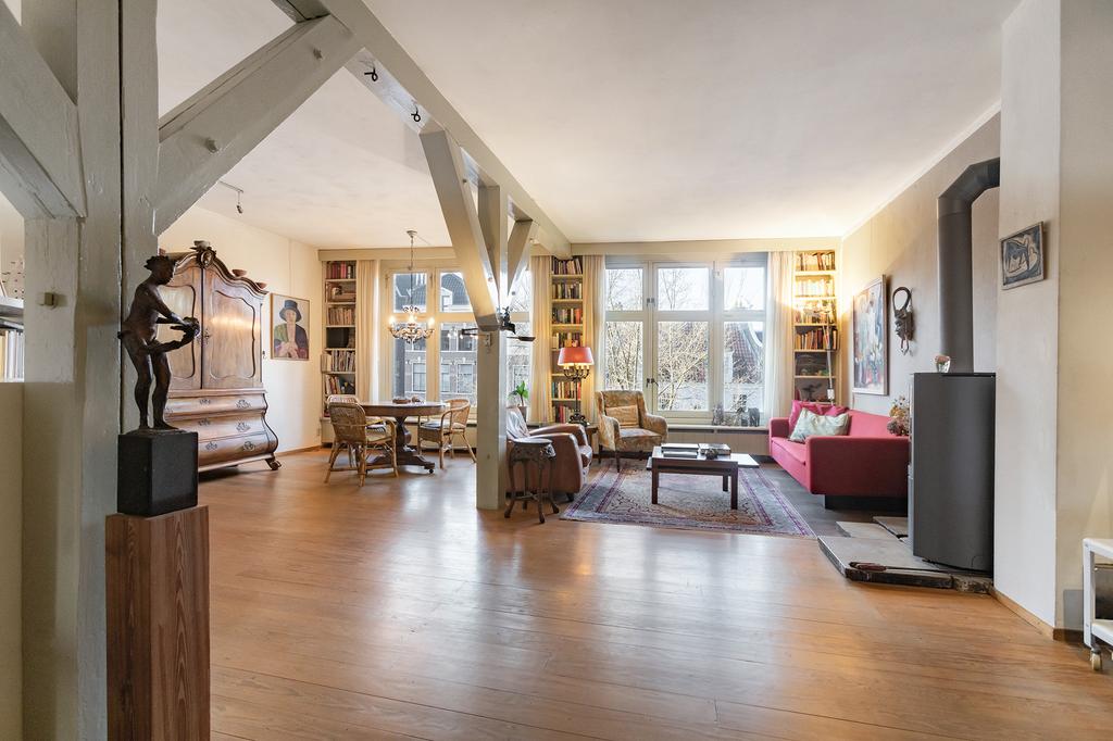 In de woonkamer kan je heerlijk ontspannen bij de zithoek voor één van de ramen. Geniet van het panoramisch uitzicht over de gracht en de Staalmeesterbrug. De living is over de gehele diepte van het pand gerealiseerd.