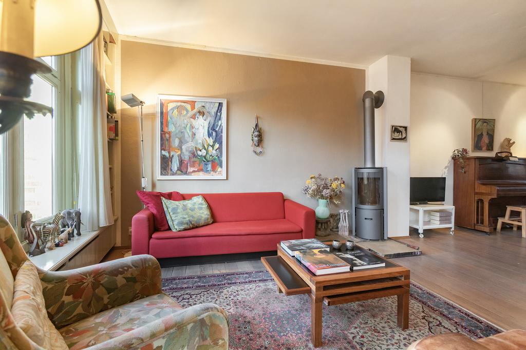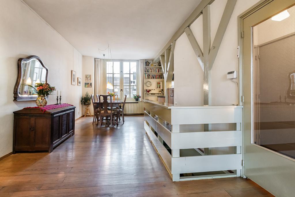 Het woongedeelte van dit bijzondere appartement ligt op de 2e verdieping (lift).