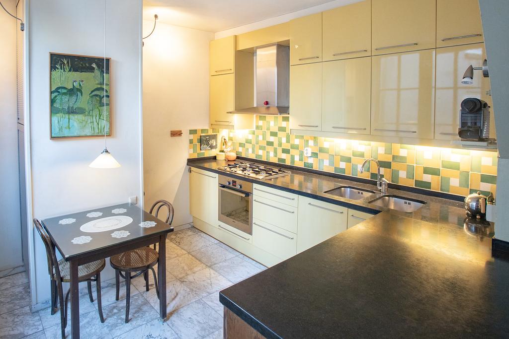 Aan de achterzijde van het appartement ligt de ruime, gezellige en praktisch ingedeelde woonkeuken.
