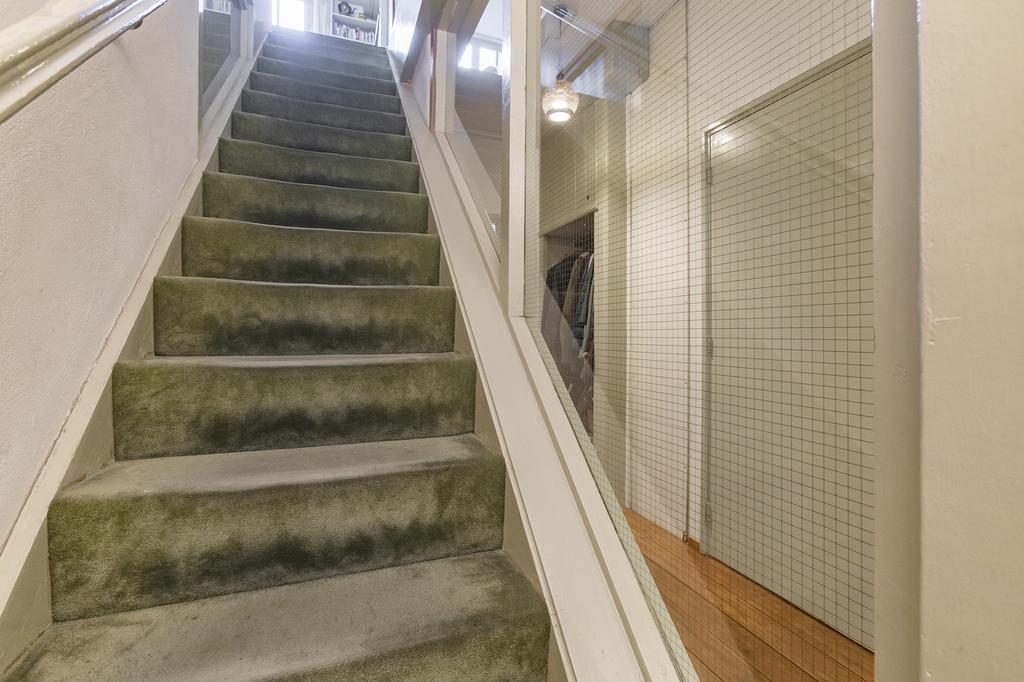 Vanaf het moment dat je het trappenhuis binnenstapt, voel je de industriële sfeer.