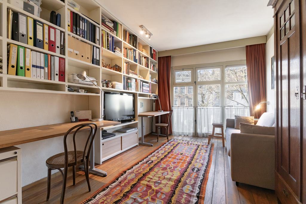 In the living room, you can relax at the seating area in front of one of the windows. Enjoy the panoramic view over the canal and the Staalmeester Bridge. The living room is realised over the entire depth of the property.