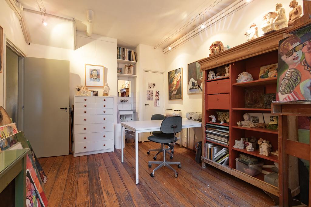 Momenteel zijn 2 kamers in gebruik als atelierruimte en werkkamer.