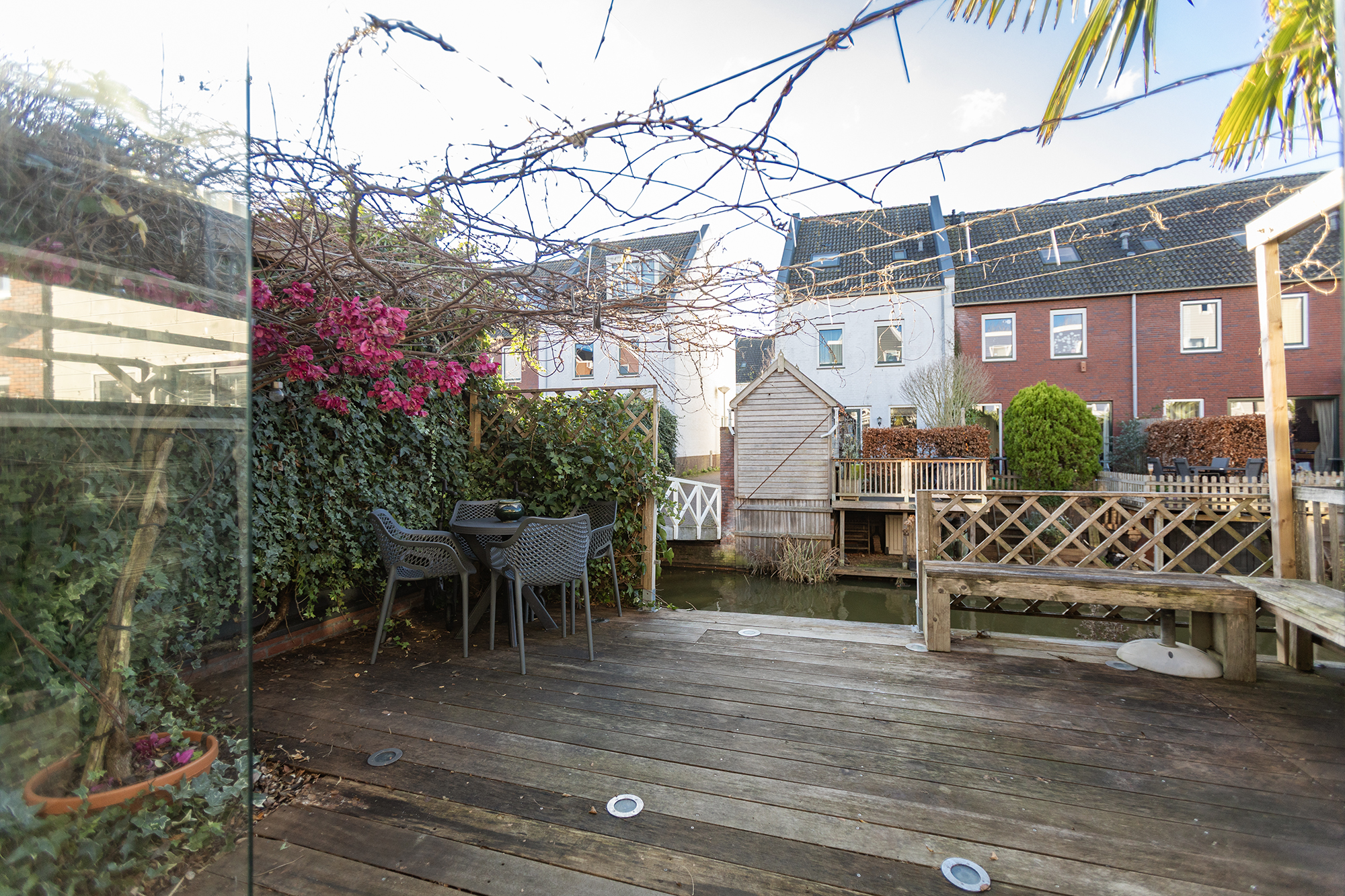 De achtertuin ligt op het zuiden en biedt zon vanaf circa 10:00 uur tot in de avond. Een heerlijke plek om te ontspannen, te eten of met vrienden te borrelen. De tuin beschikt over een veranda met verlichting en zonwering, een buitenkraan en stroompunten in zowel de tuin als de schuur. Ook aan de voorzijde is een buitenkraan aanwezig. Aan de voorzijde van de woning bevindt zich bovendien een eigen oprit – parkeren op eigen terrein is hier vanzelfsprekend. In de straat zijn daarnaast laadpalen aanwezig en parkeren via vergunning is eenvoudig te regelen.