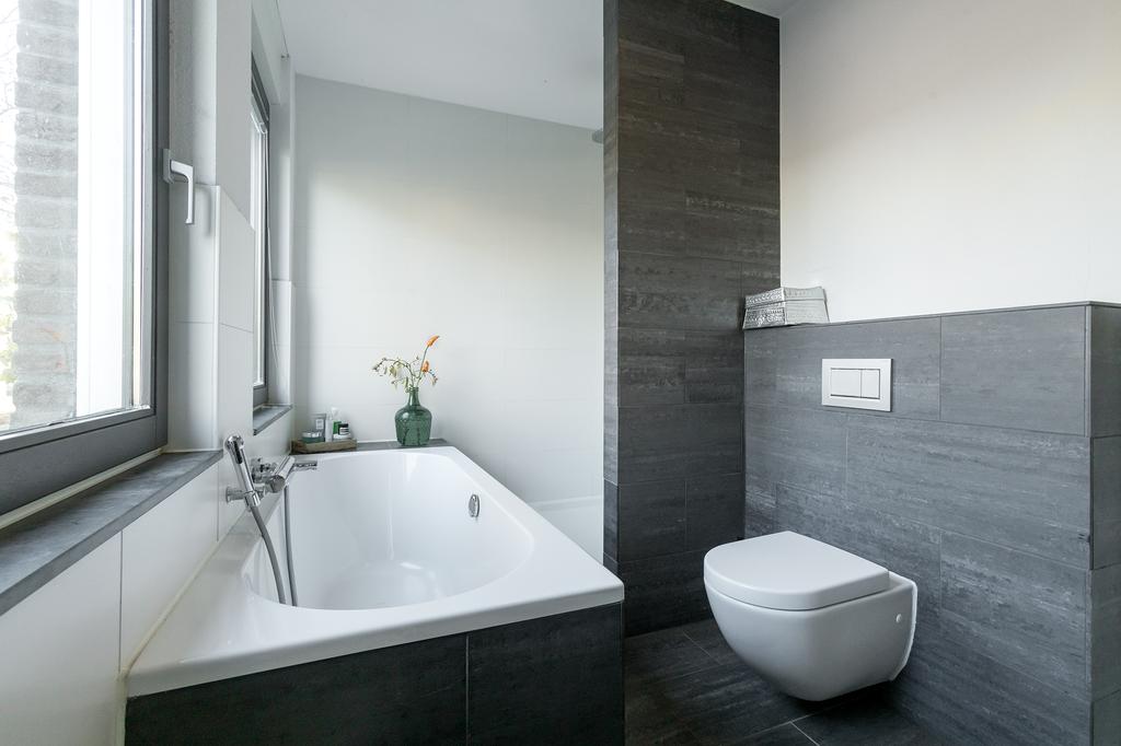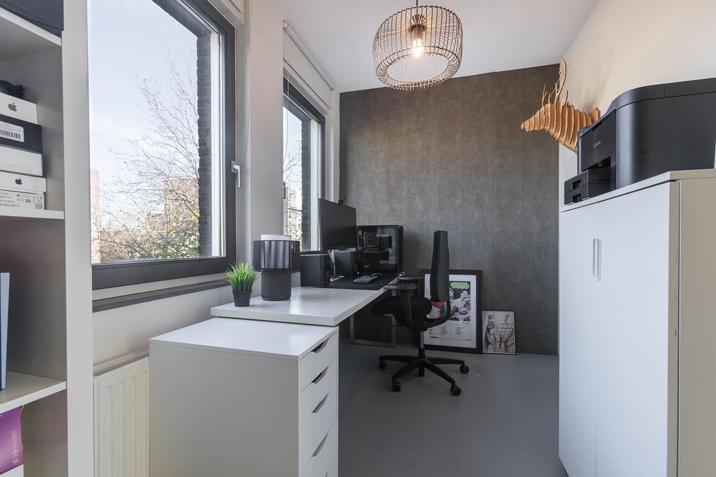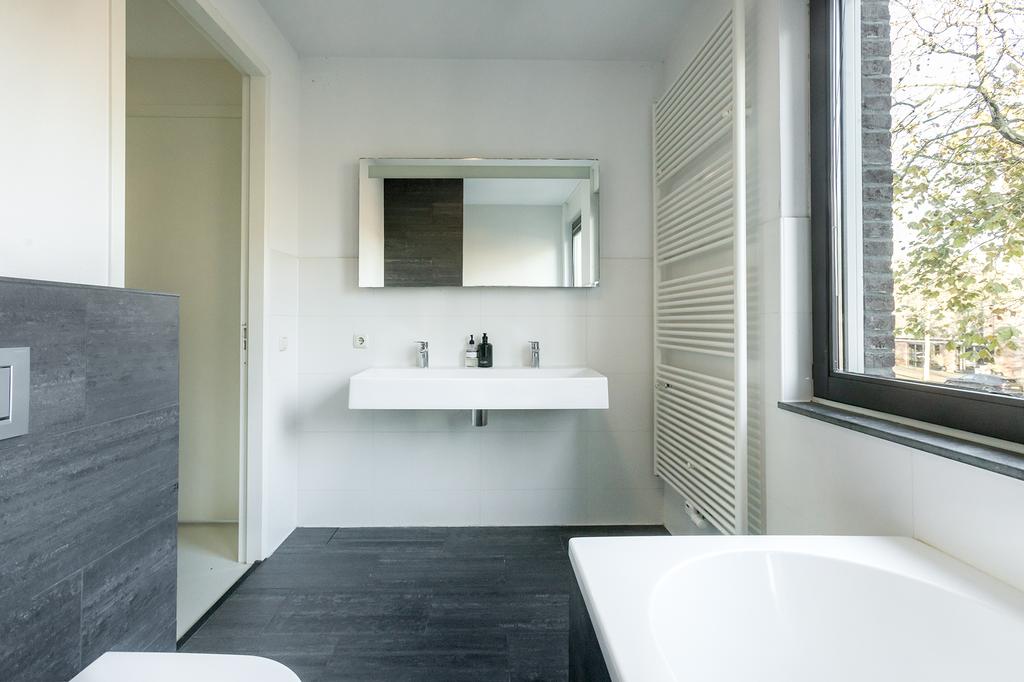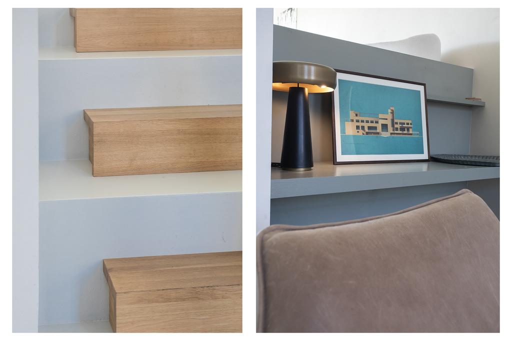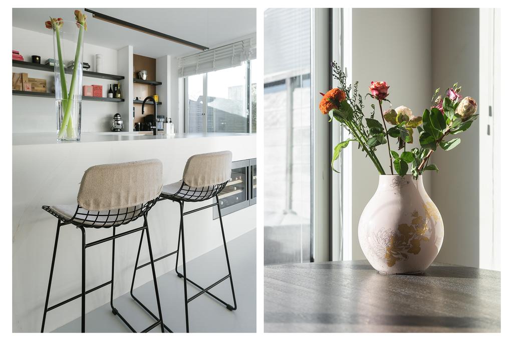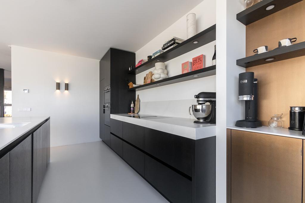 On the ground floor, you will find the recently renovated, open living space with a contemporary cast floor that creates a calm, modern atmosphere. The extra width at the back makes the living area exceptionally spacious and bright. The new kitchen, relocated to the garden side, features a cooking island with high-end appliances. The pictures speak for themselves: with the use of premium materials and an impressive design, the kitchen is a real showstopper. Large glass doors seamlessly connect the kitchen to the sunny garden, blending indoor and outdoor spaces.