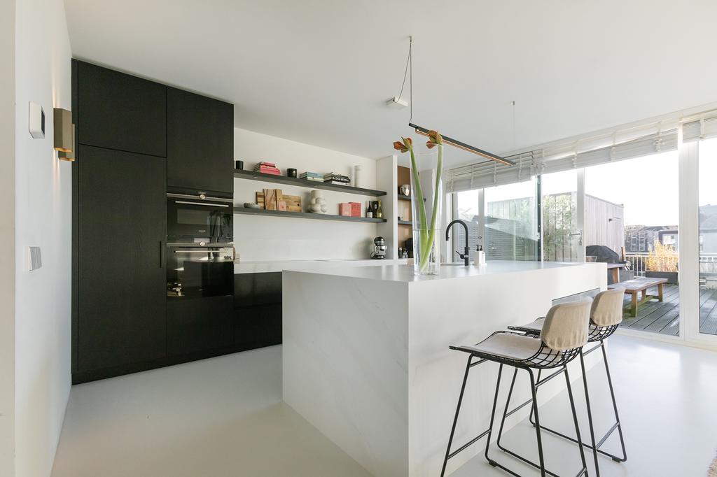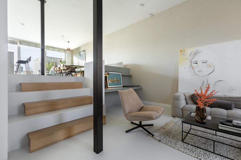 • Extra brede woonkamer en keuken dankzij unieke ligging boven het trappenhuis