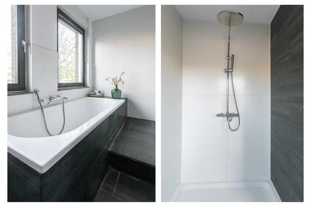 Op de eerste verdieping bevinden zich twee ruime slaapkamers, waaronder een prachtige master bedroom met inloopkast en grote ramen voor veel lichtinval. Een extra kamer op deze verdieping kan flexibel worden gebruikt als speelruimte, werkruimte of extra slaapkamer, ideaal voor veranderende gezinsbehoeften. De luxe badkamer is voorzien van een duo-ligbad, inloopdouche en dubbele wastafel, afgewerkt met moderne materialen voor een serene uitstraling. Op de tweede verdieping zijn er nog eens twee slaapkamers, ideaal als kinder-, logeer- of werkruimte, en een tweede badkamer met douche en toilet.