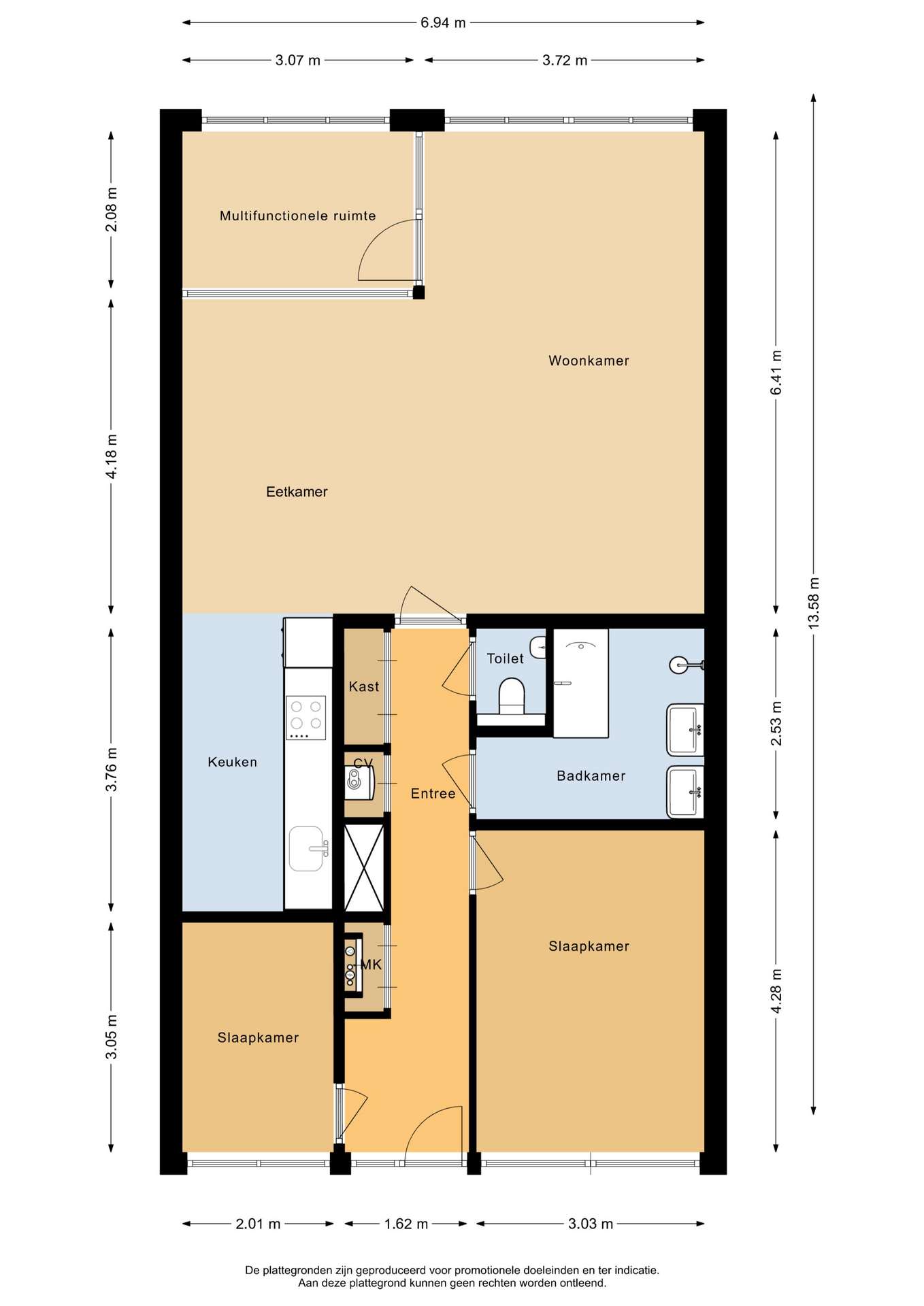 Deze informatie is met zorg samengesteld. Er wordt geen aansprakelijkheid aanvaard voor eventuele onvolledigheden of onjuistheden. Alle opgegeven maten en oppervlakten zijn indicatief.