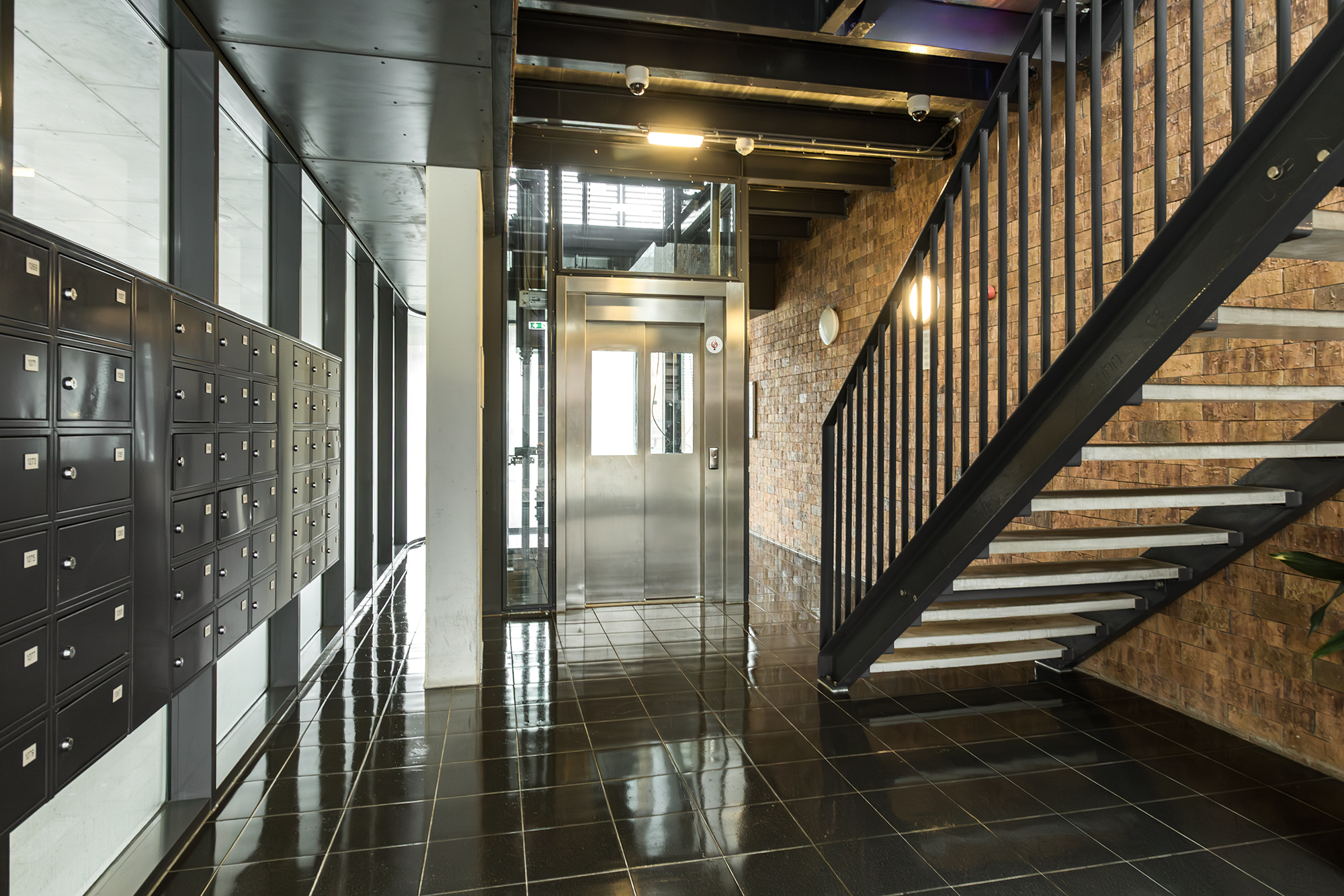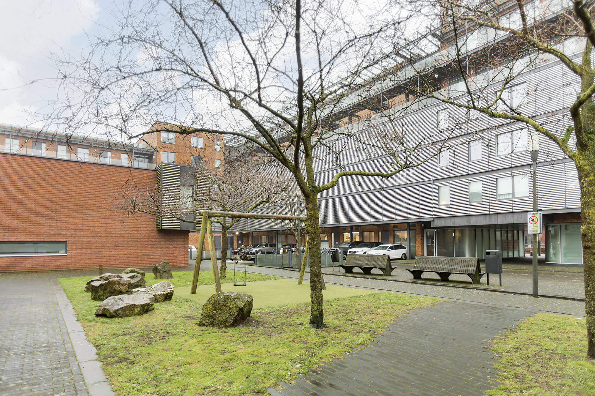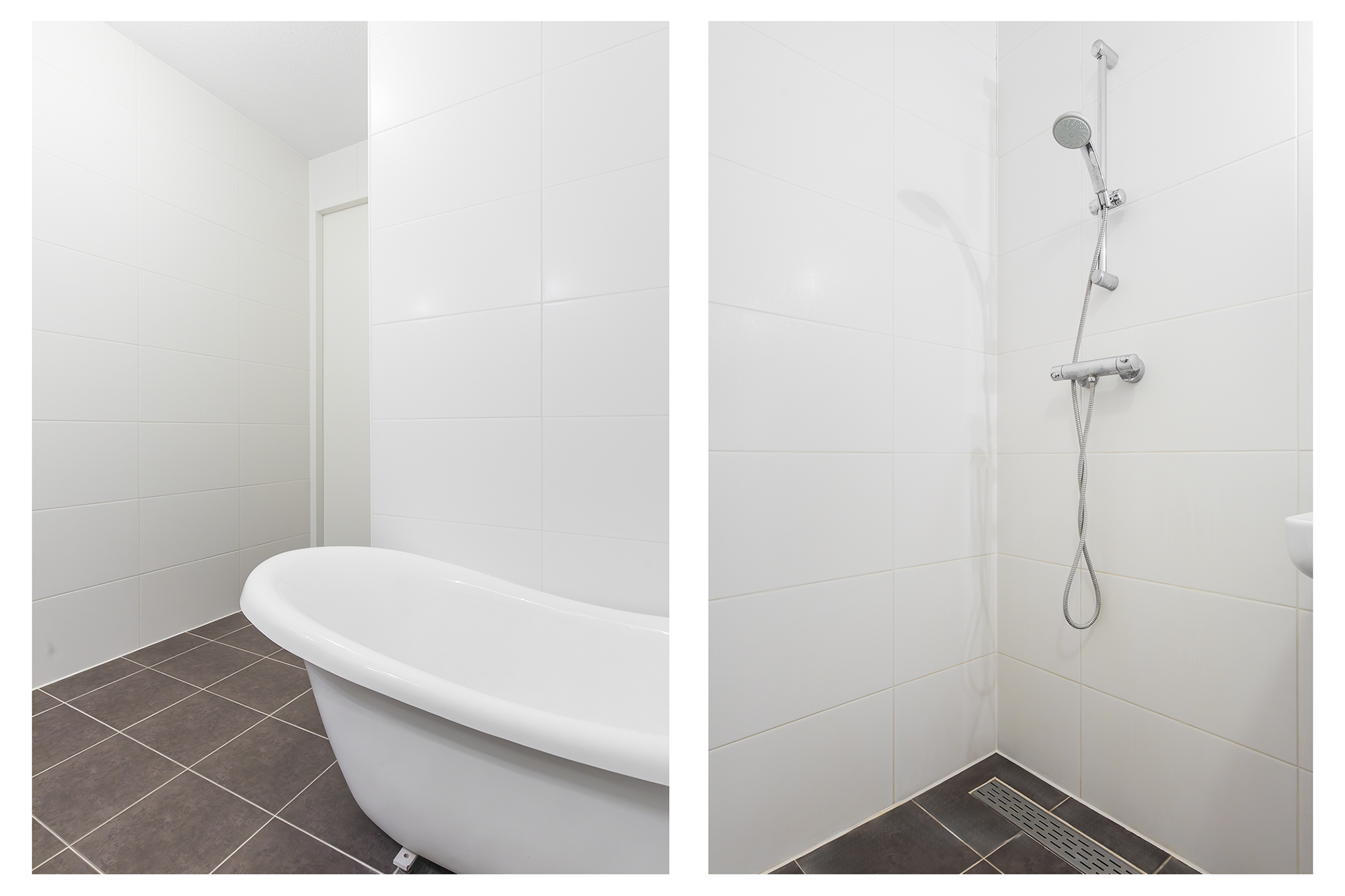 Aan de galerijzijde liggen twee slaapkamers. De badkamer is uitgerust met een dubbele wastafel en een ruime douche. Het toilet is separaat en er is een handige bergkast met de wasmachineaansluiting.