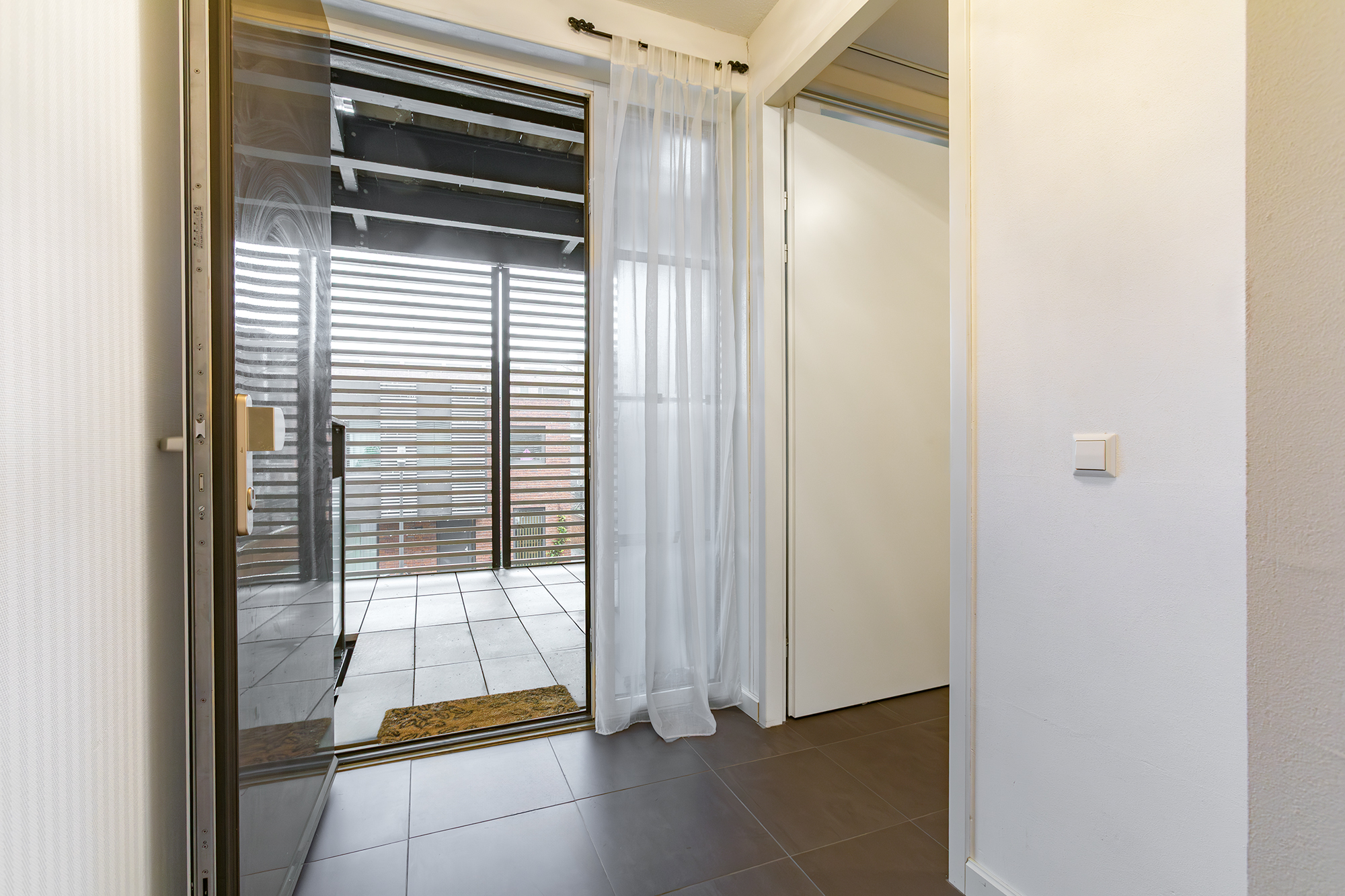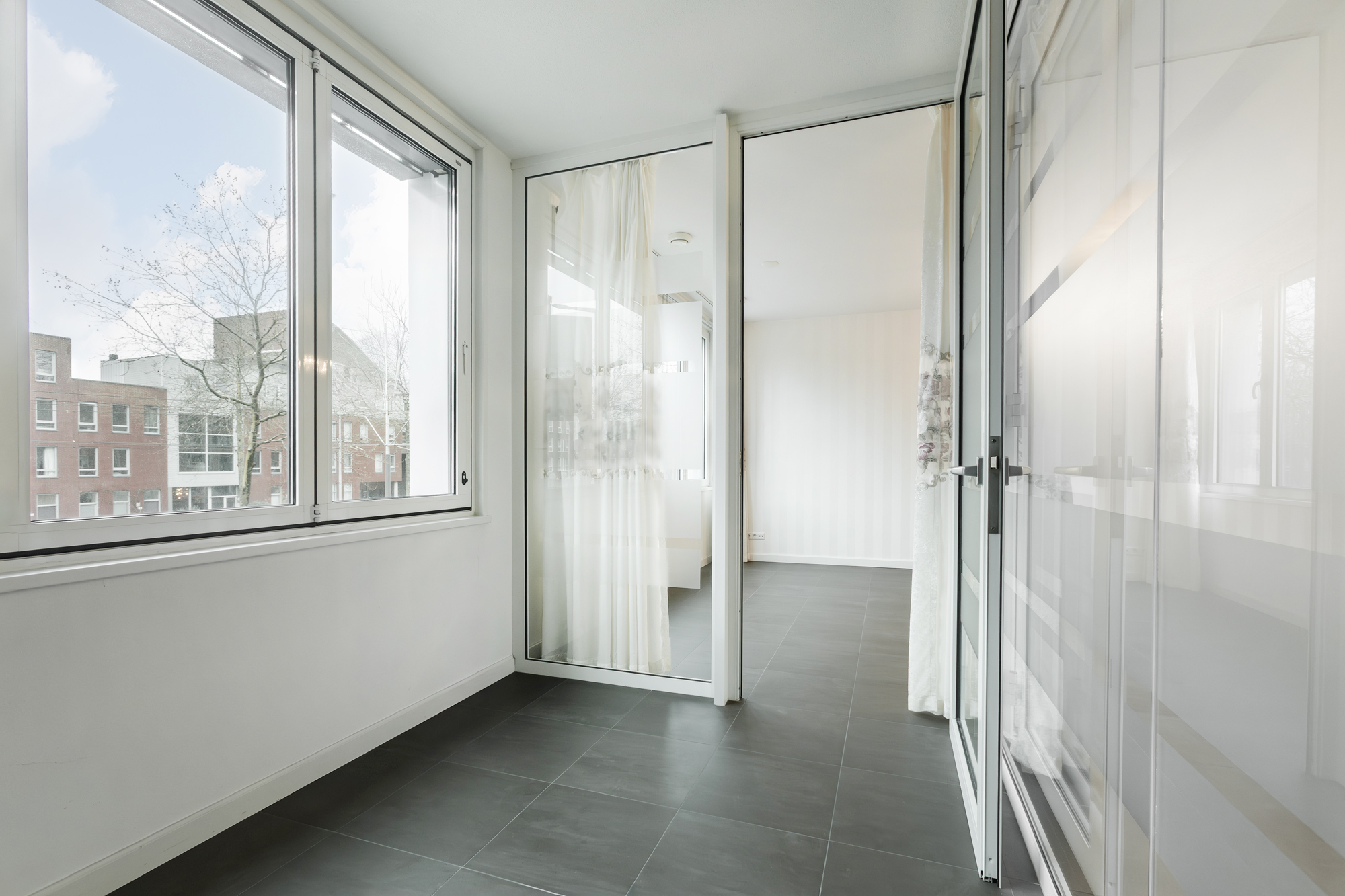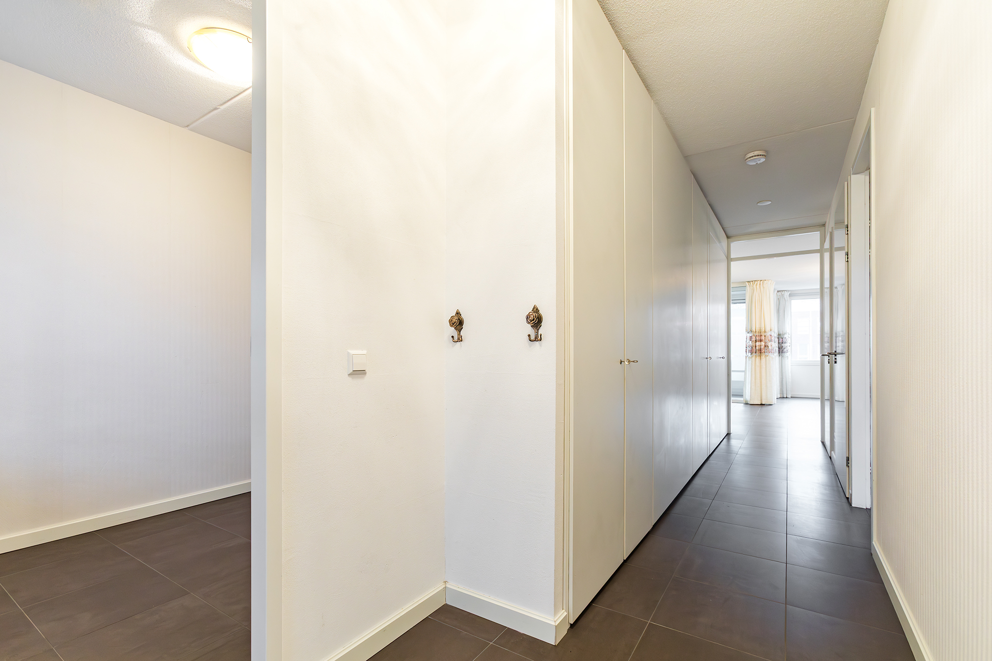 The communal entrance on IJburglaan takes you to the apartment on the first floor via stairs or elevator. Inside, you’re welcomed by a spacious hallway that connects all rooms.