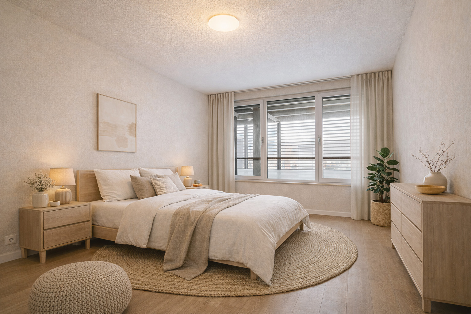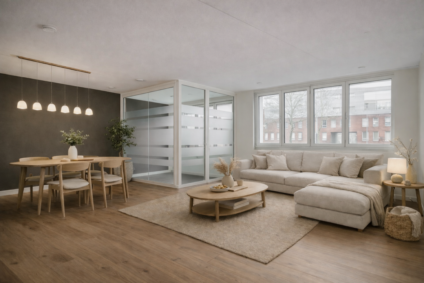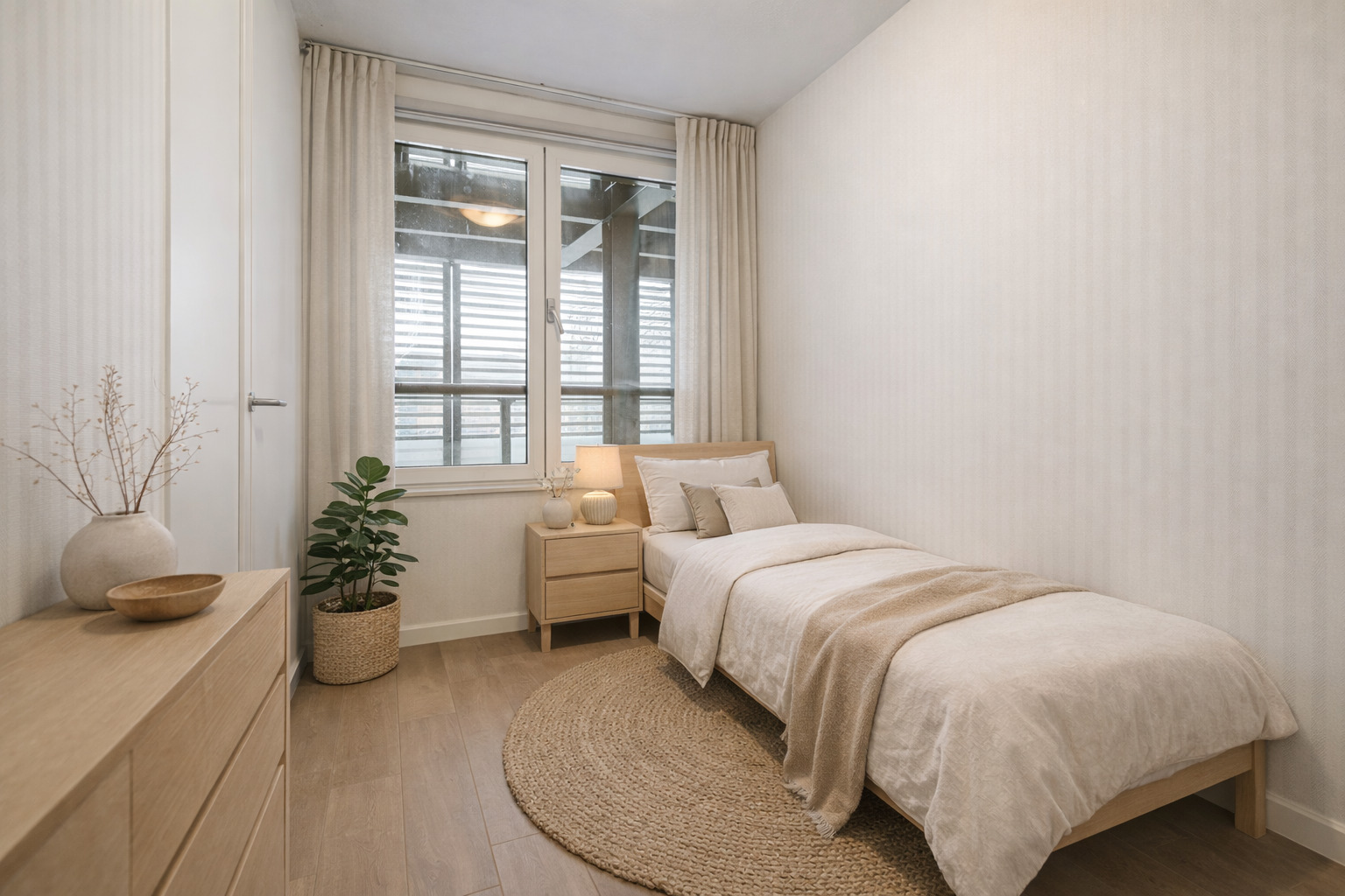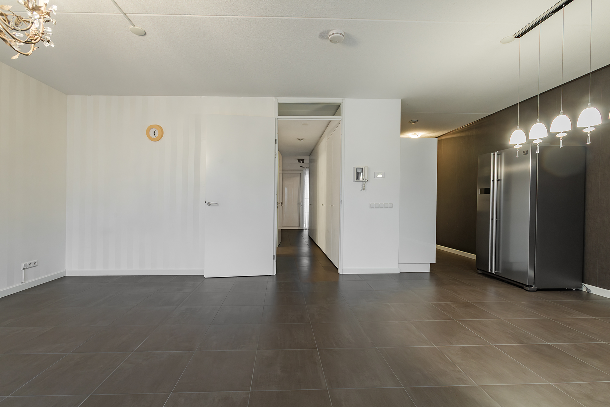 The communal entrance on IJburglaan takes you to the apartment on the first floor via stairs or elevator. Inside, you’re welcomed by a spacious hallway that connects all rooms.