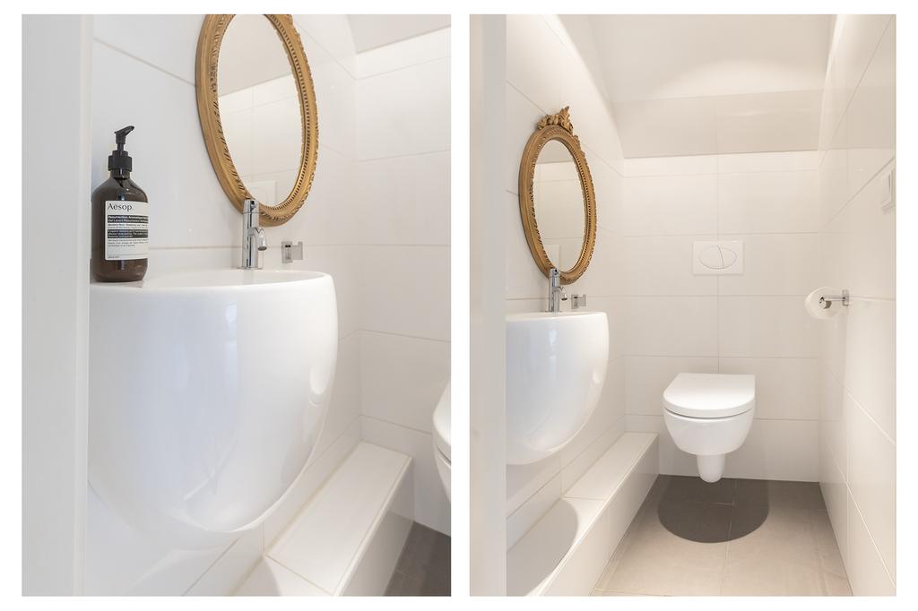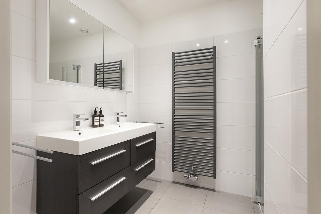 Elke verdieping beschikt over een moderne badkamer, compleet met regendouches, dubbele wastafelmeubels en handdoekradiatoren. De badkamer op de hoofdverdieping is extra luxe dankzij de vloerverwarming. Daarnaast heeft elke verdieping een apart toilet.