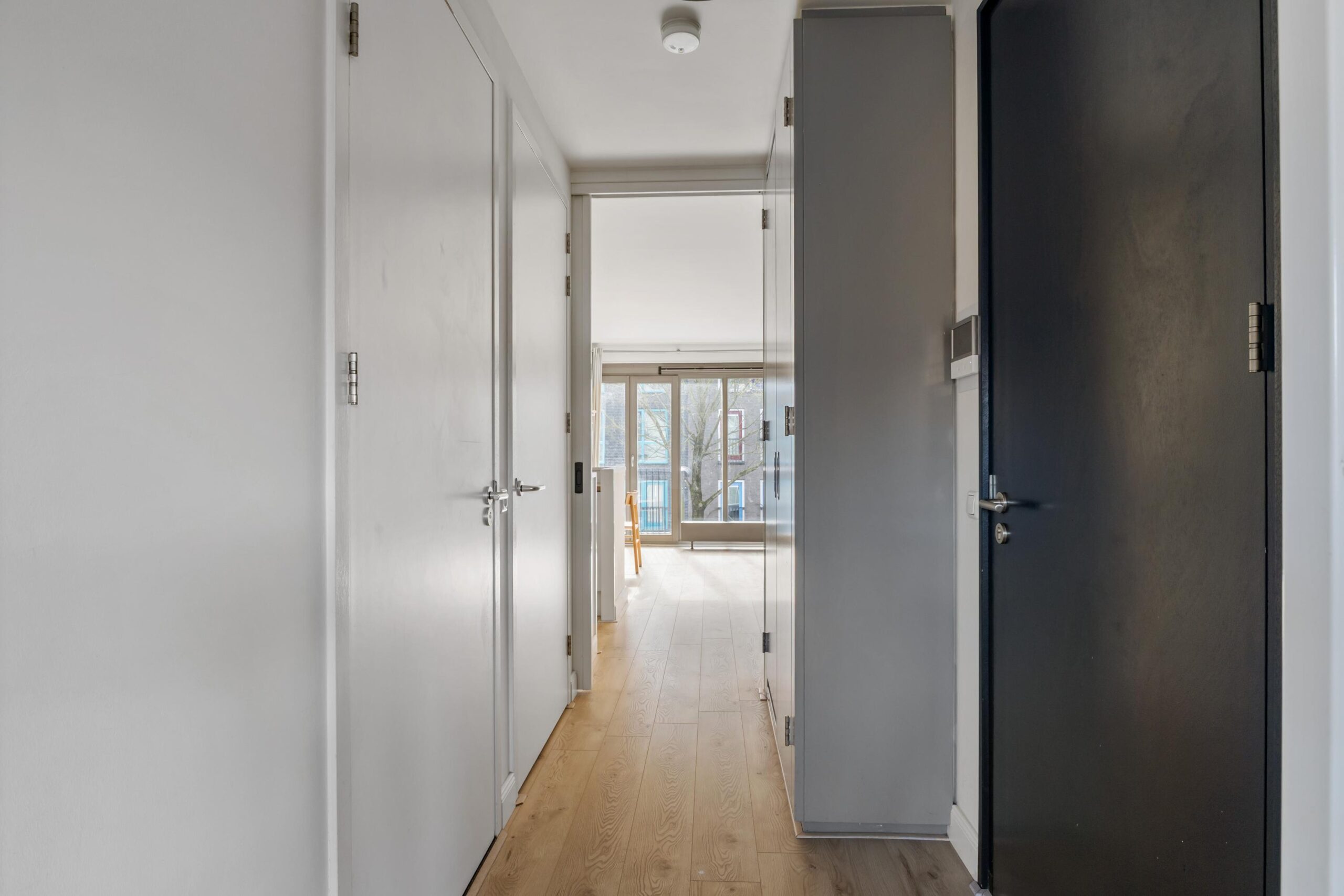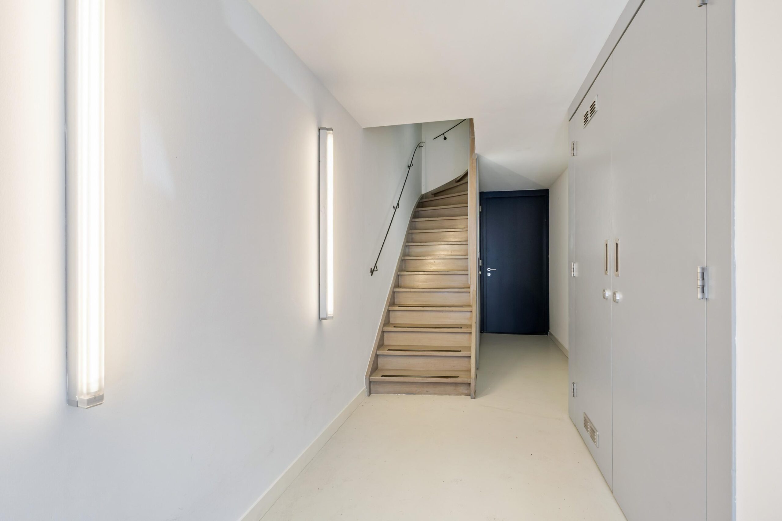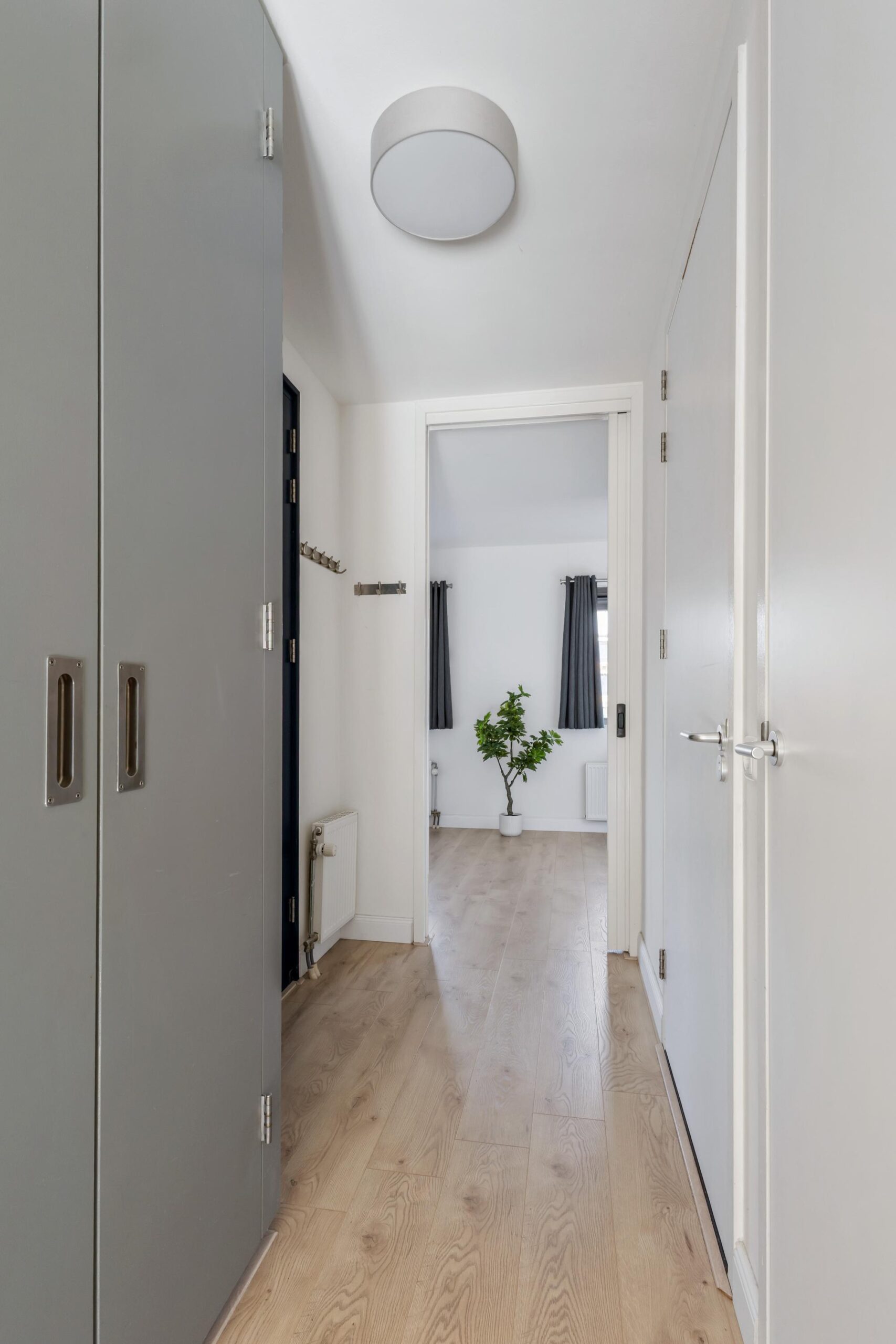 Via het gemeenschappelijke trappenhuis bereik je de woning op de tweede verdieping. Je komt binnen in de hal die toegang geeft tot alle vertrekken.