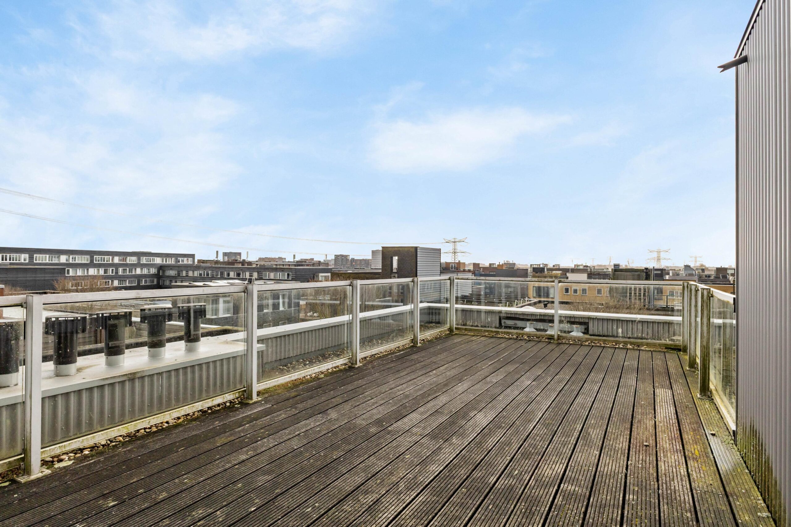 Als bewoner heb je toegang tot een heerlijk gezamenlijk dakterras op de vijfde verdieping. Een fijne plek om buiten te zitten, met buren samen te komen of van het uitzicht te genieten.
