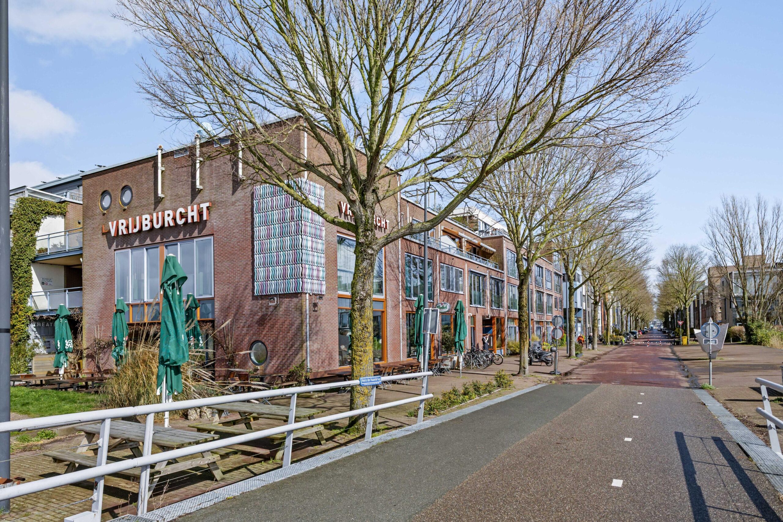 Hier woon je in een omgeving waar alles samenkomt: water, ruimte, architectuur en een ontspannen sfeer. Aan het eind van de straat vind je Brasserie Vrijburcht met terras aan het water – een plek waar je makkelijk even aanschuift voor koffie of een borrel. Loop je de andere kant op, dan sta je zo bij het iconische Sluishuis met eetcafé Écluse, waar je geniet van het terras en de zon. Wil je de stad in? Met 15 minuten sta je op Centraal Station.