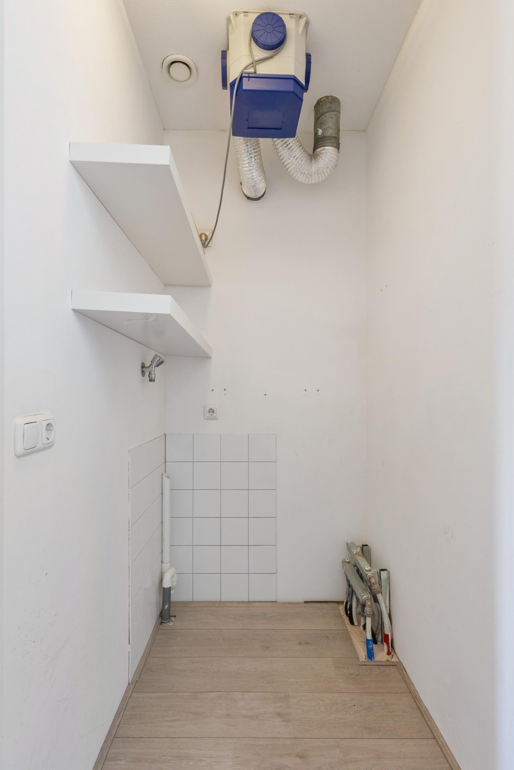 Daarnaast is er vanuit de hal toegang tot een praktische wasruimte en een inbouwkast.