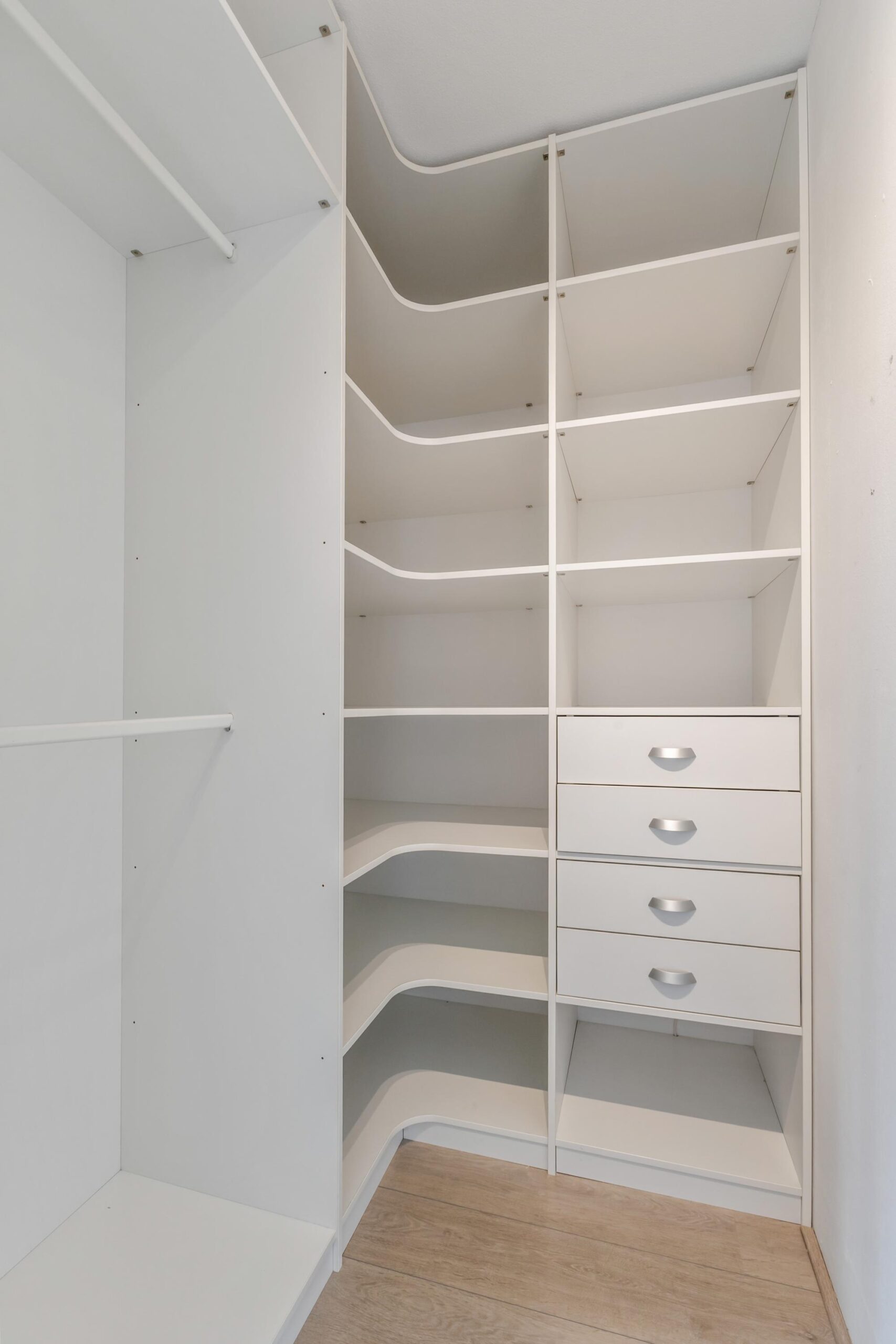 Ruime walk-in closet en aparte bergkast met wasmachine aansluiting