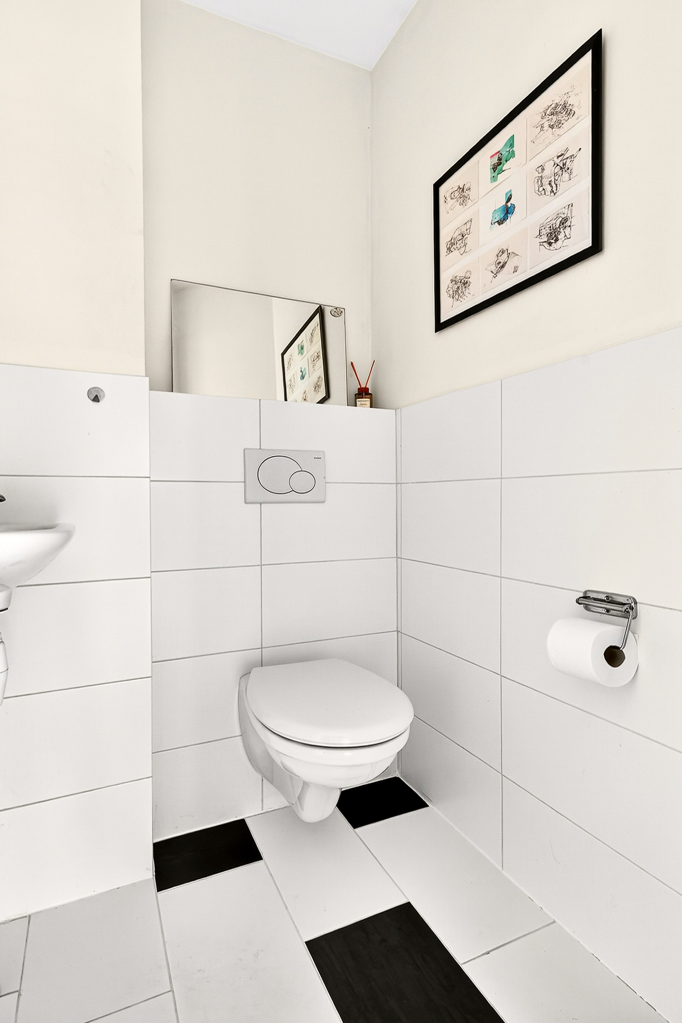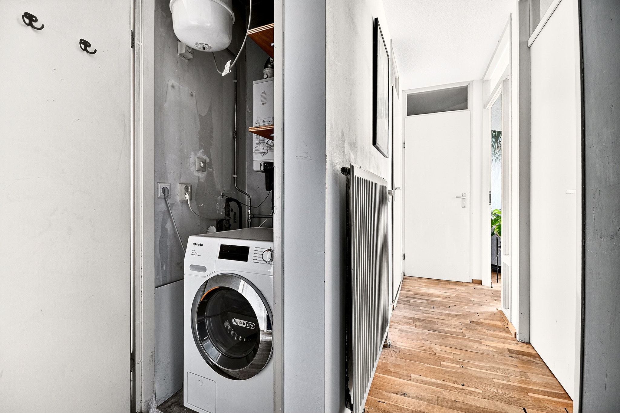 In the hall, there is a cupboard with the central heating boiler (Intergas HR, 2009) and the washing machine connection. In the basement, there is a spacious storage room (approx. 8 m²).