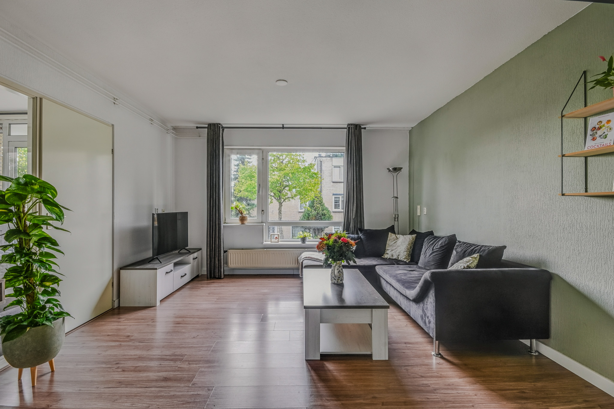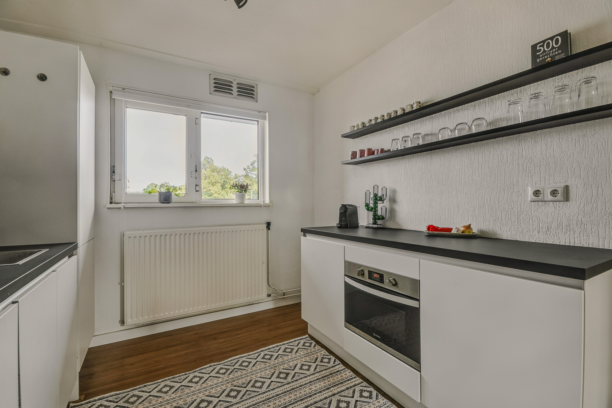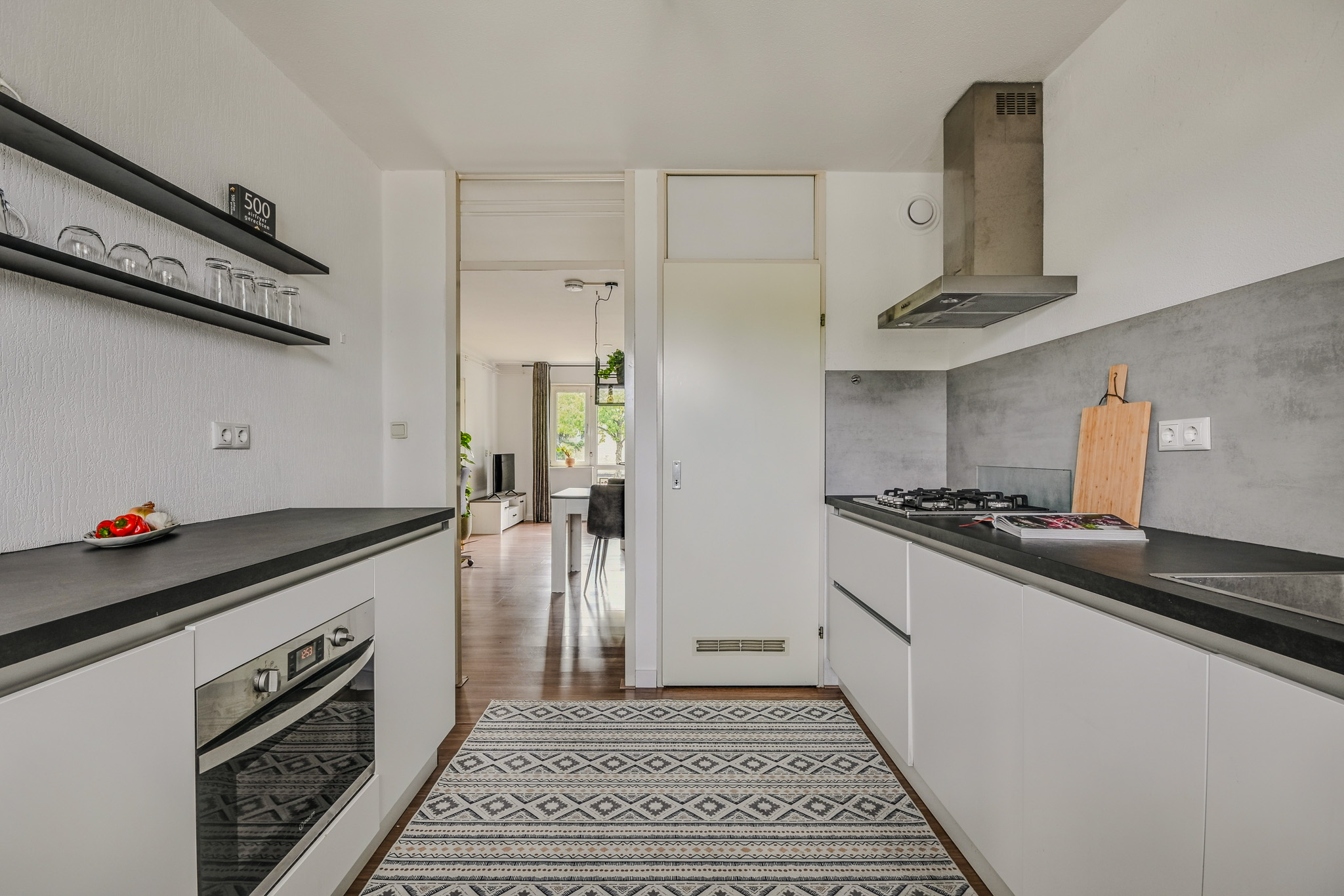 Via het gemeenschappelijke trappenhuis bereik je de entree van de woning, gelegen op een afgesloten galerij. De hal met handige kastruimte brengt je naar de lichte woonkamer. Aansluitend vind je de moderne keuken met inbouwapparatuur, C.V.-kast en extra bergruimte, ideaal om uitgebreid te koken of gezellig te borrelen met vrienden.