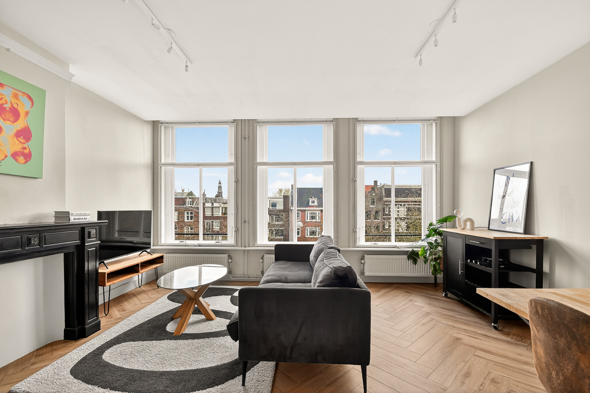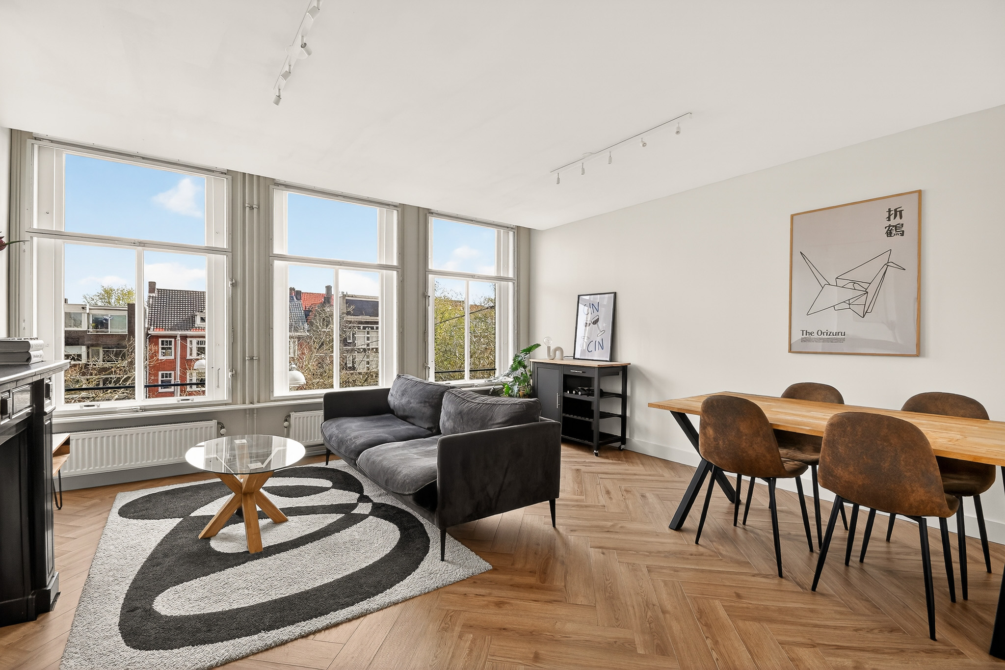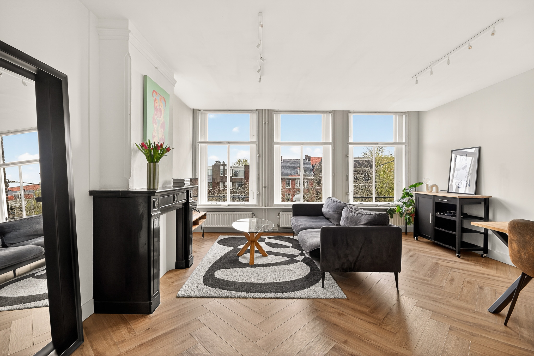 • Lichte woonkamer met drie grote ramen